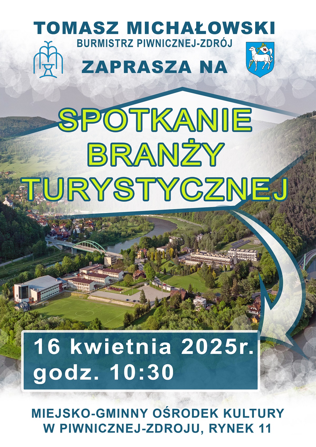 Tomasz Michałowski Burmistrz Piwnicznej-Zdrój zaprasza na spotkanie branży turystycznej 16.04.2025 r. godz. 10:30