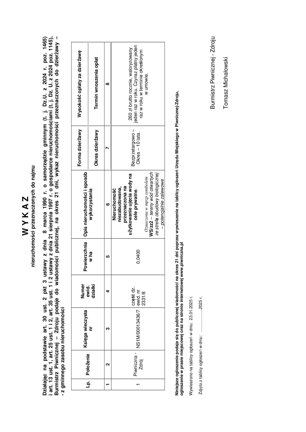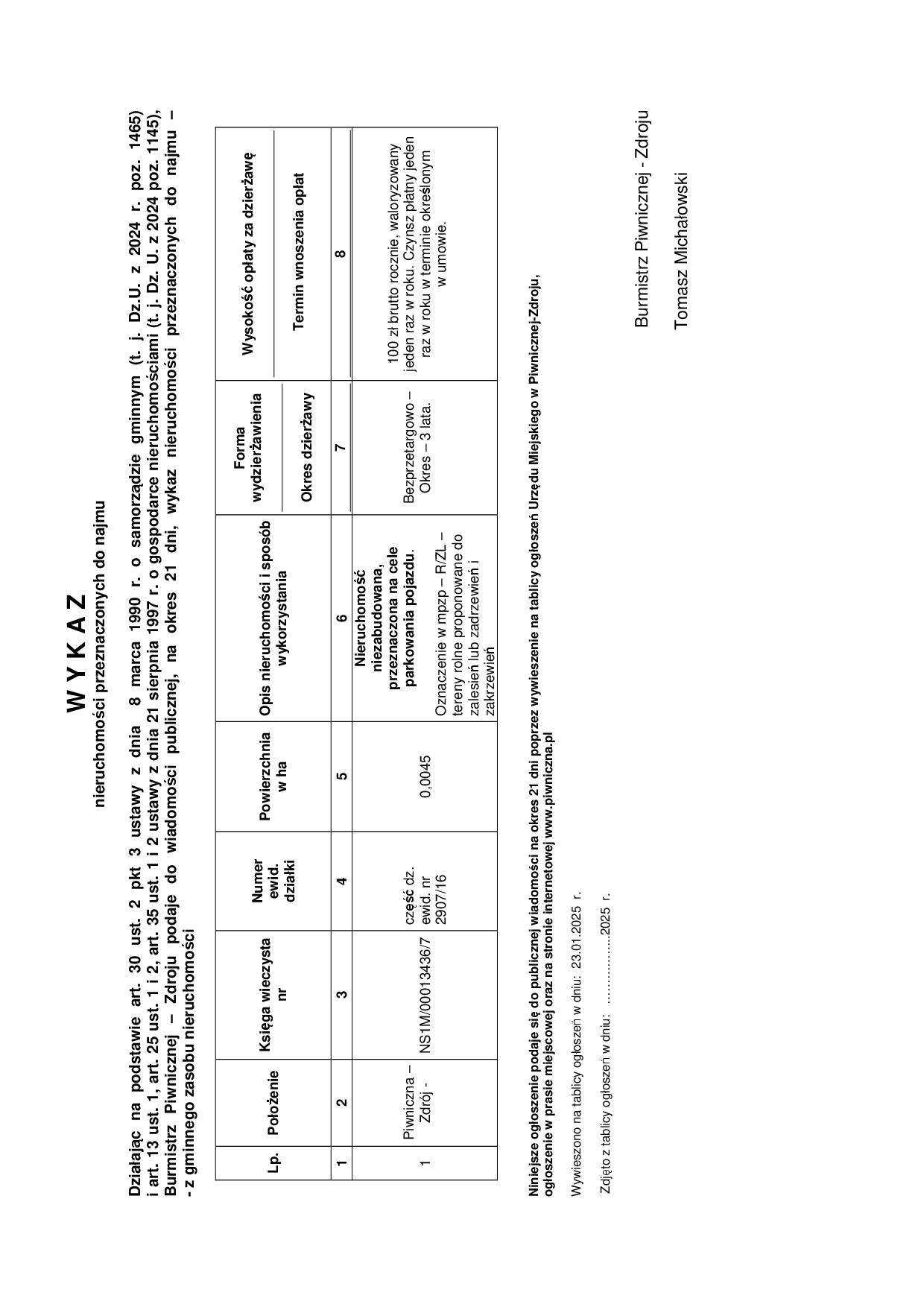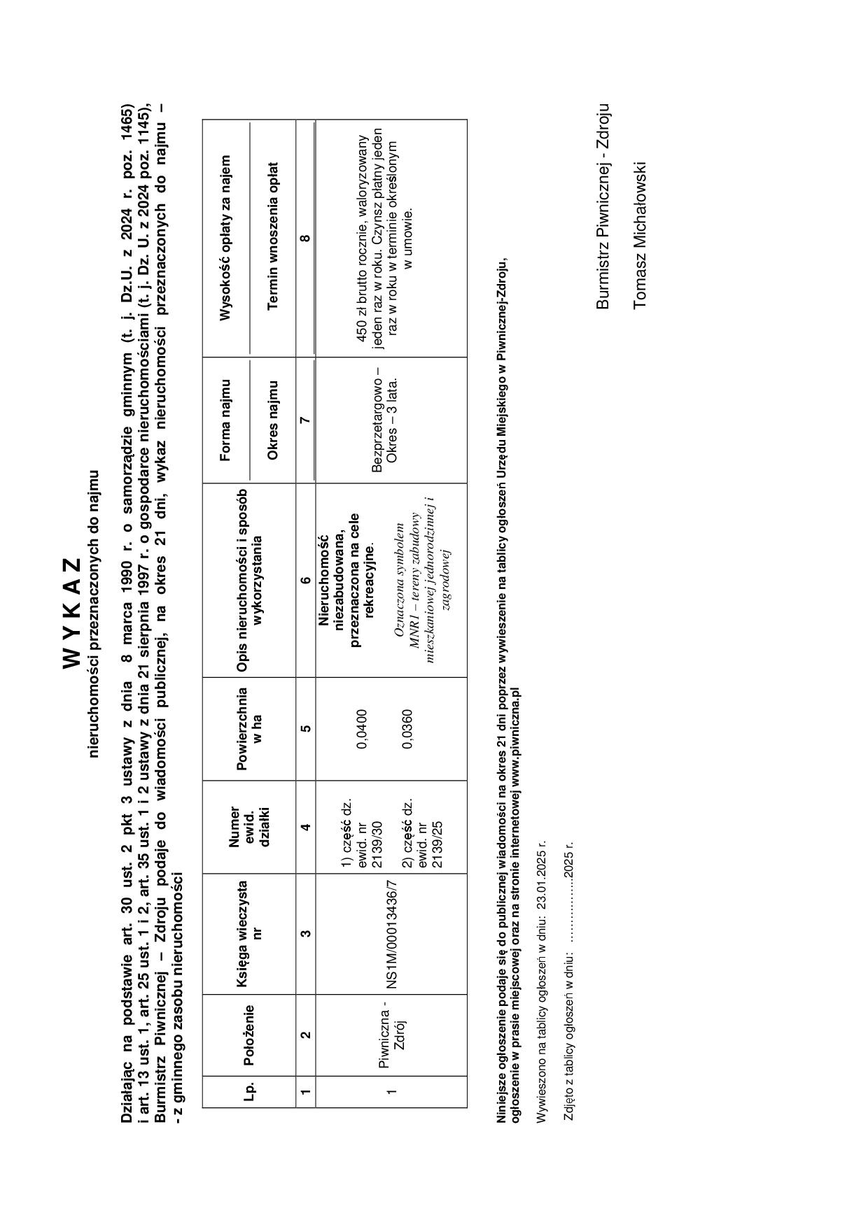 [23.01.2025 r.] WYKAZ nieruchomości przeznaczonych do najmu, sprzedaży i użyczenia