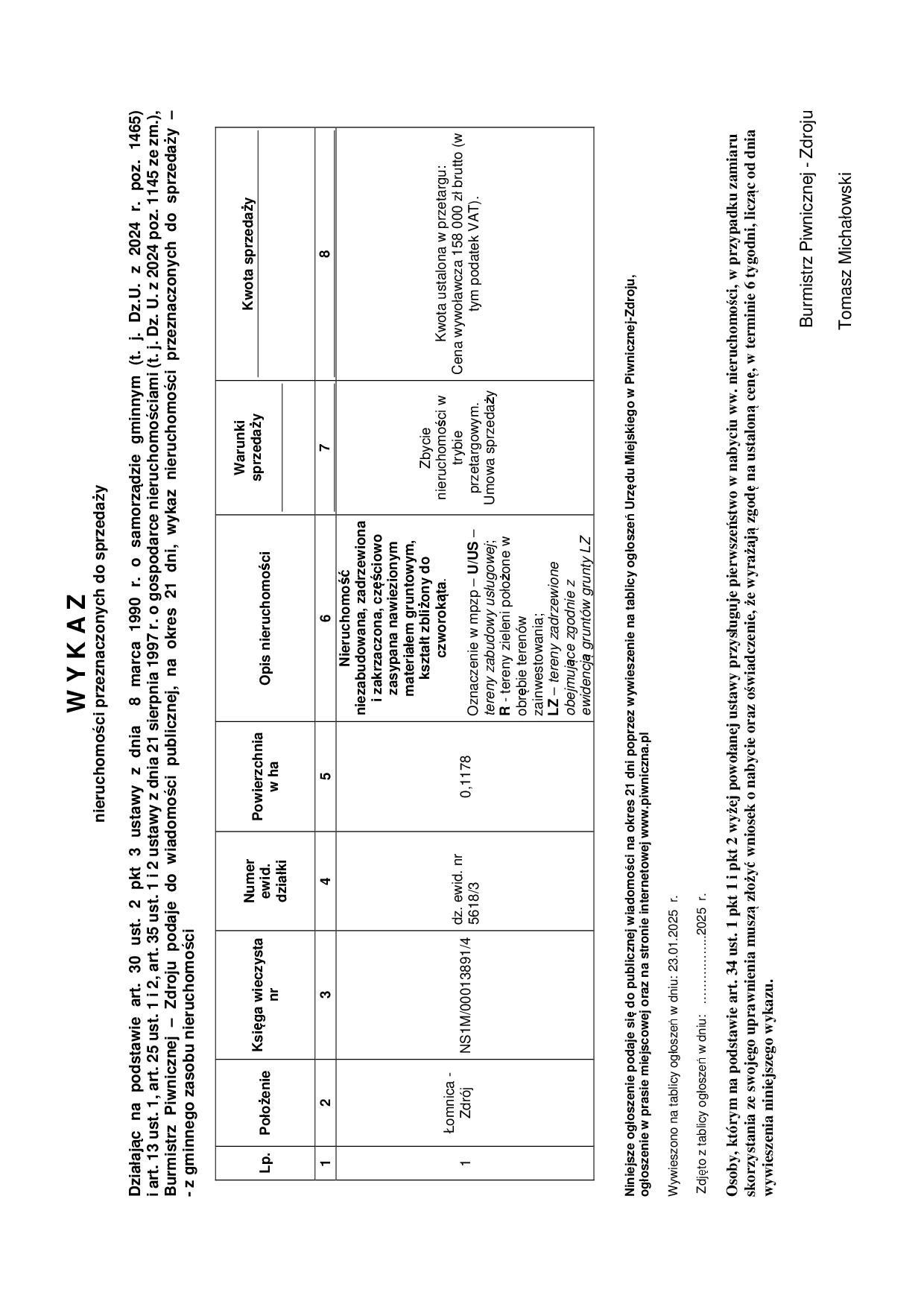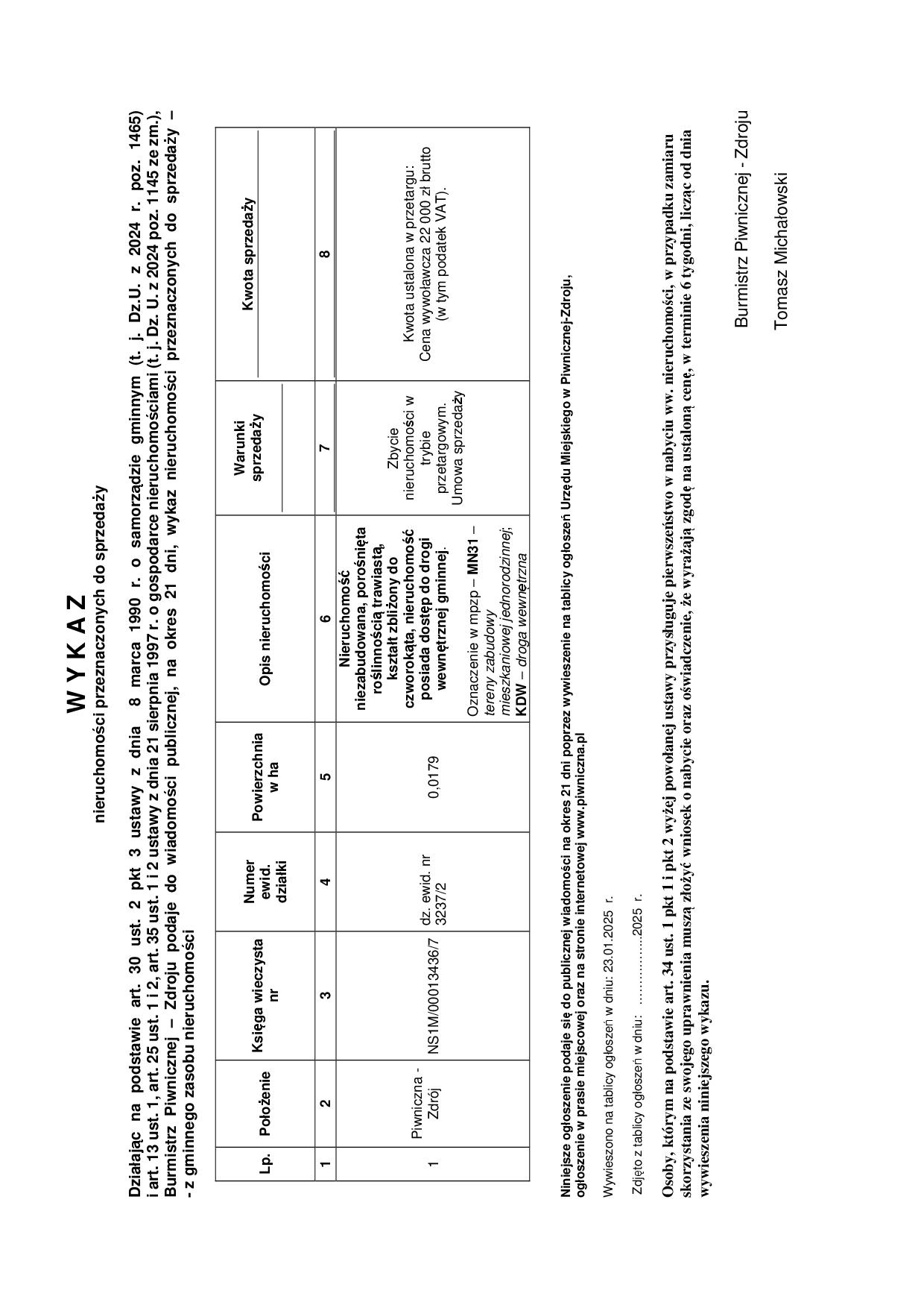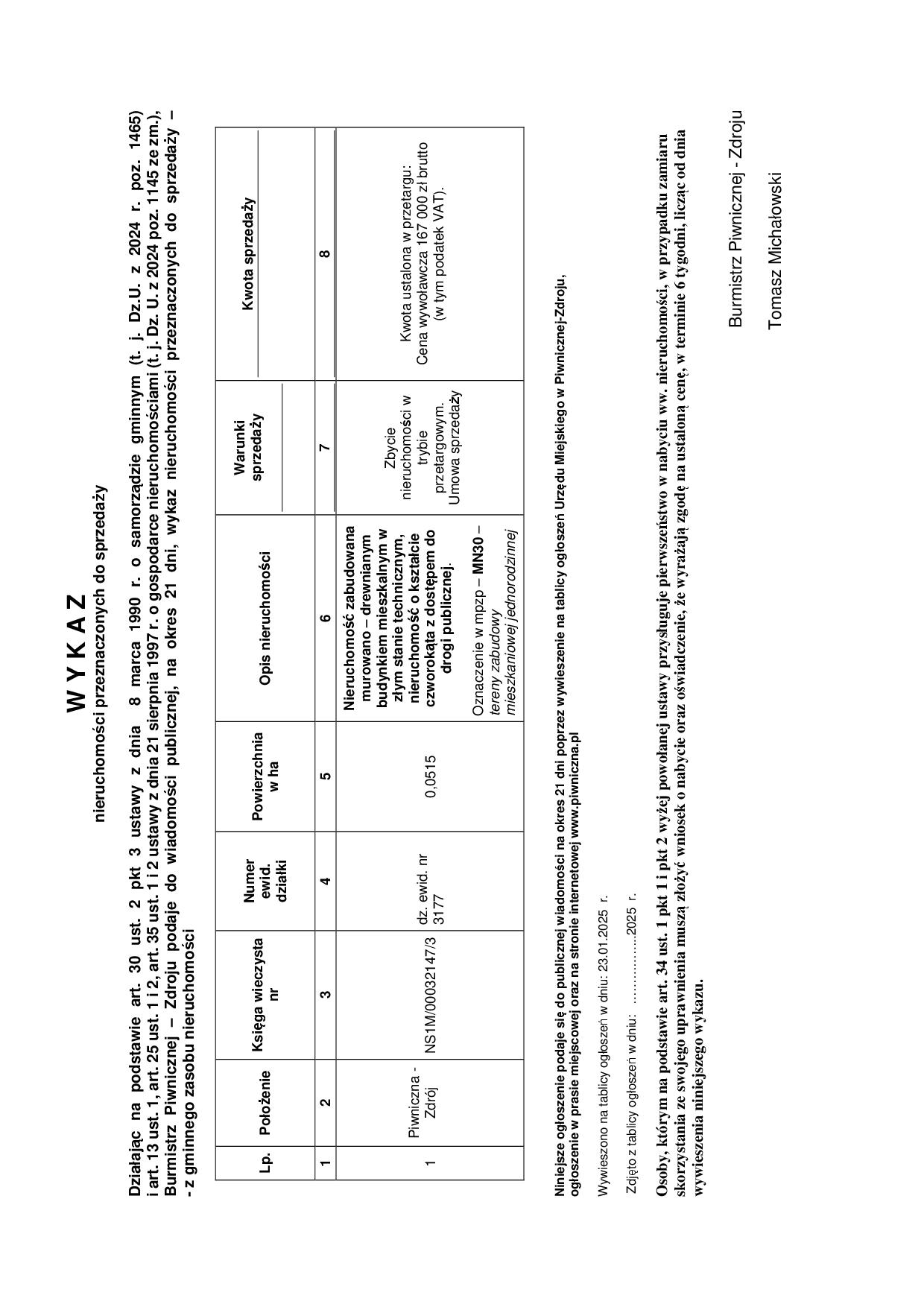 [23.01.2025 r.] WYKAZ nieruchomości przeznaczonych do najmu, sprzedaży i użyczenia