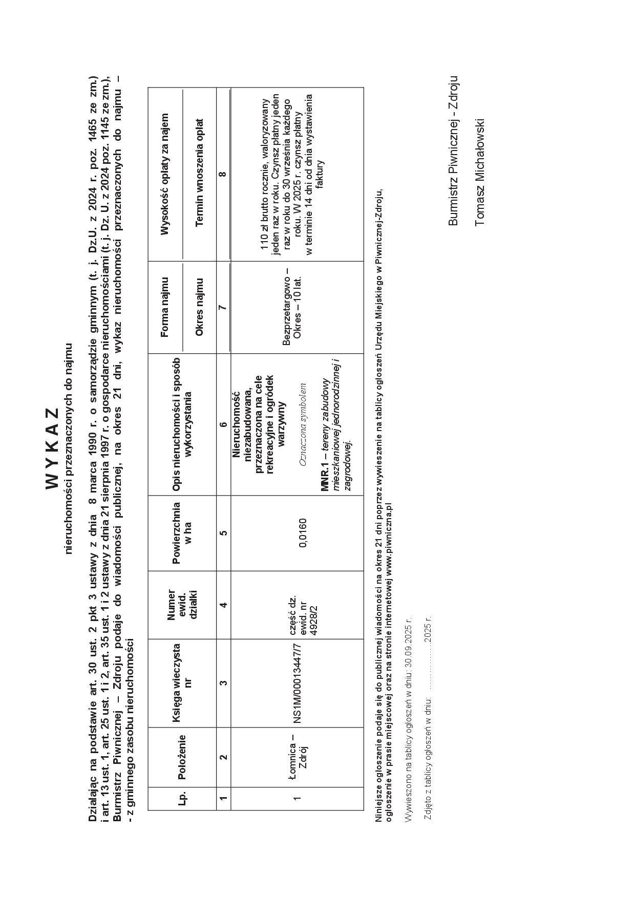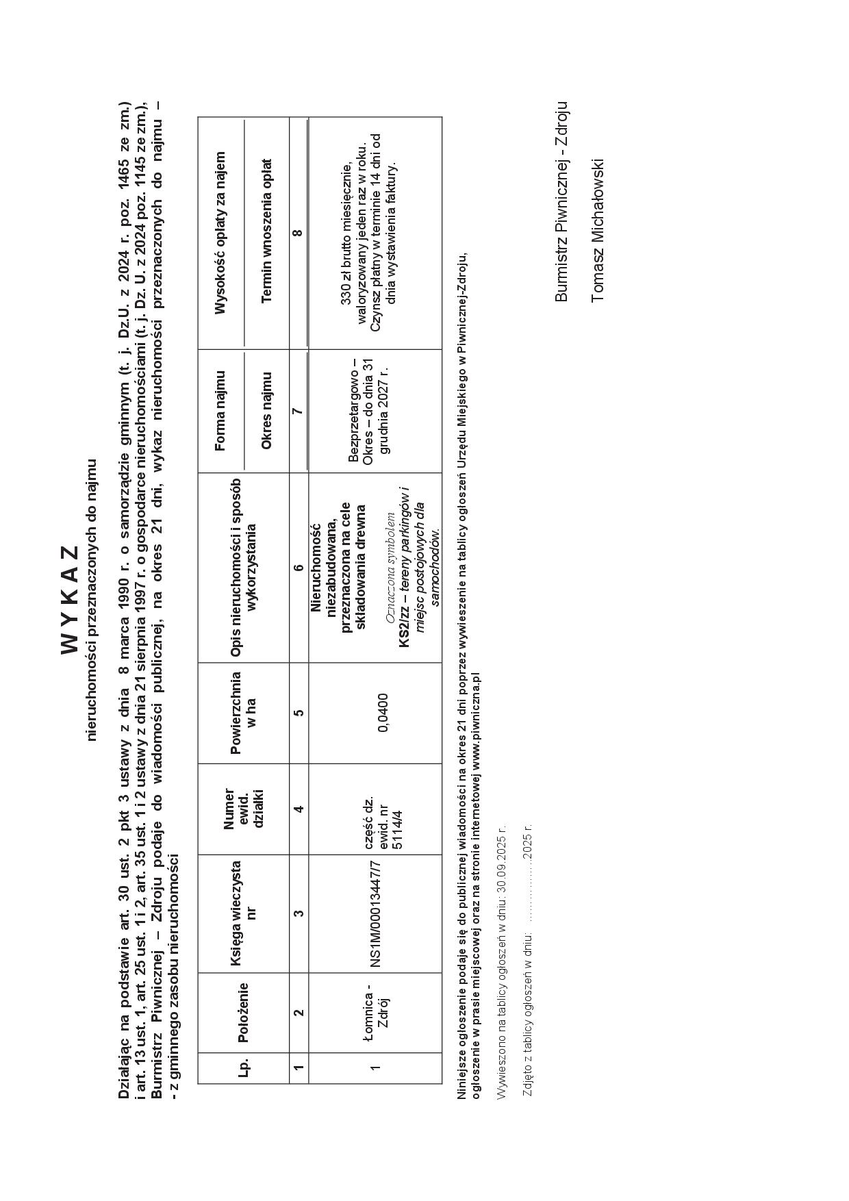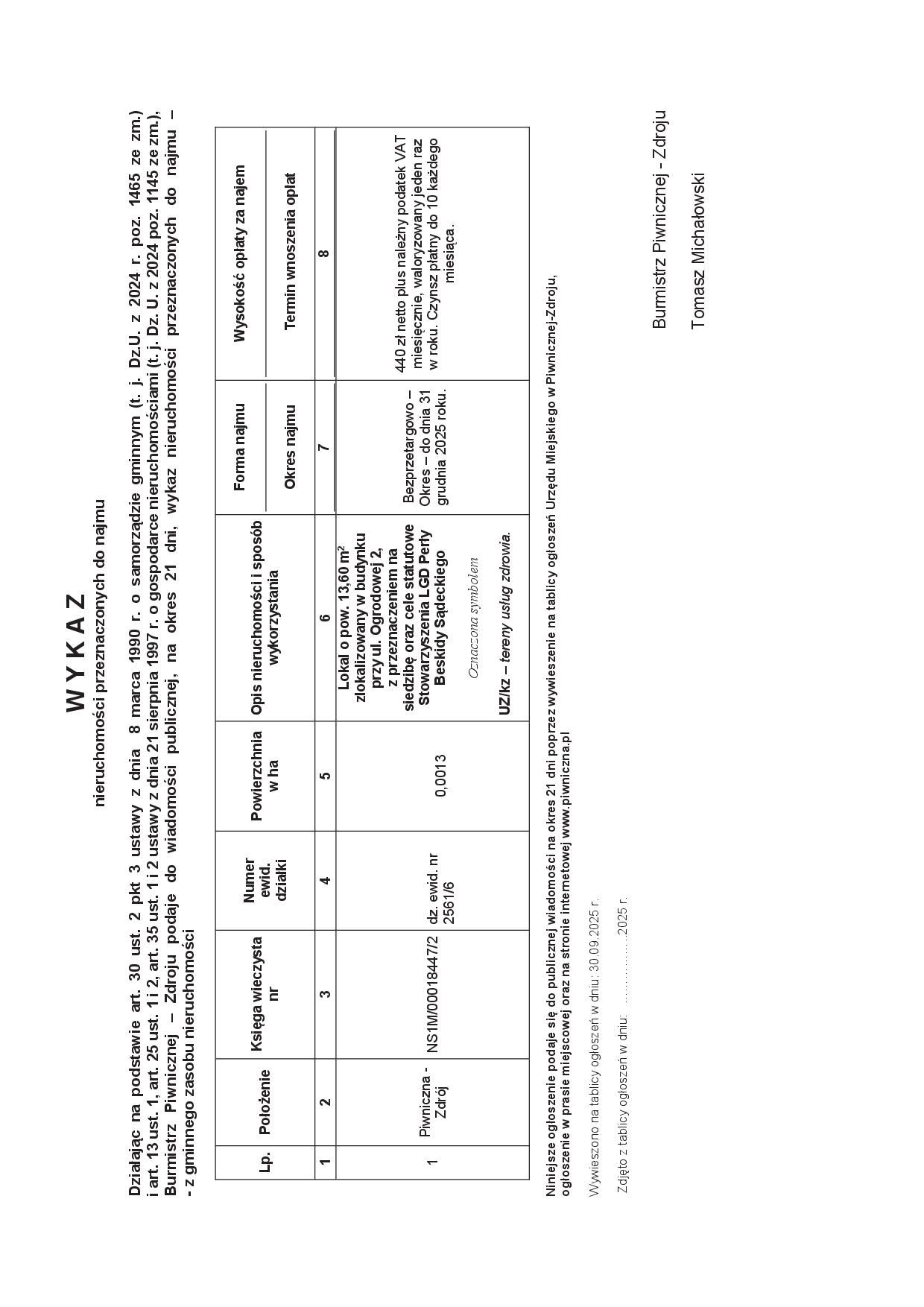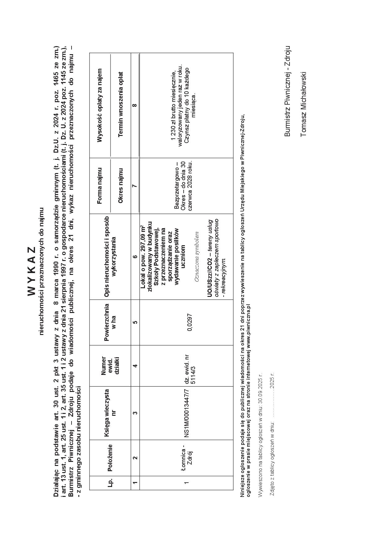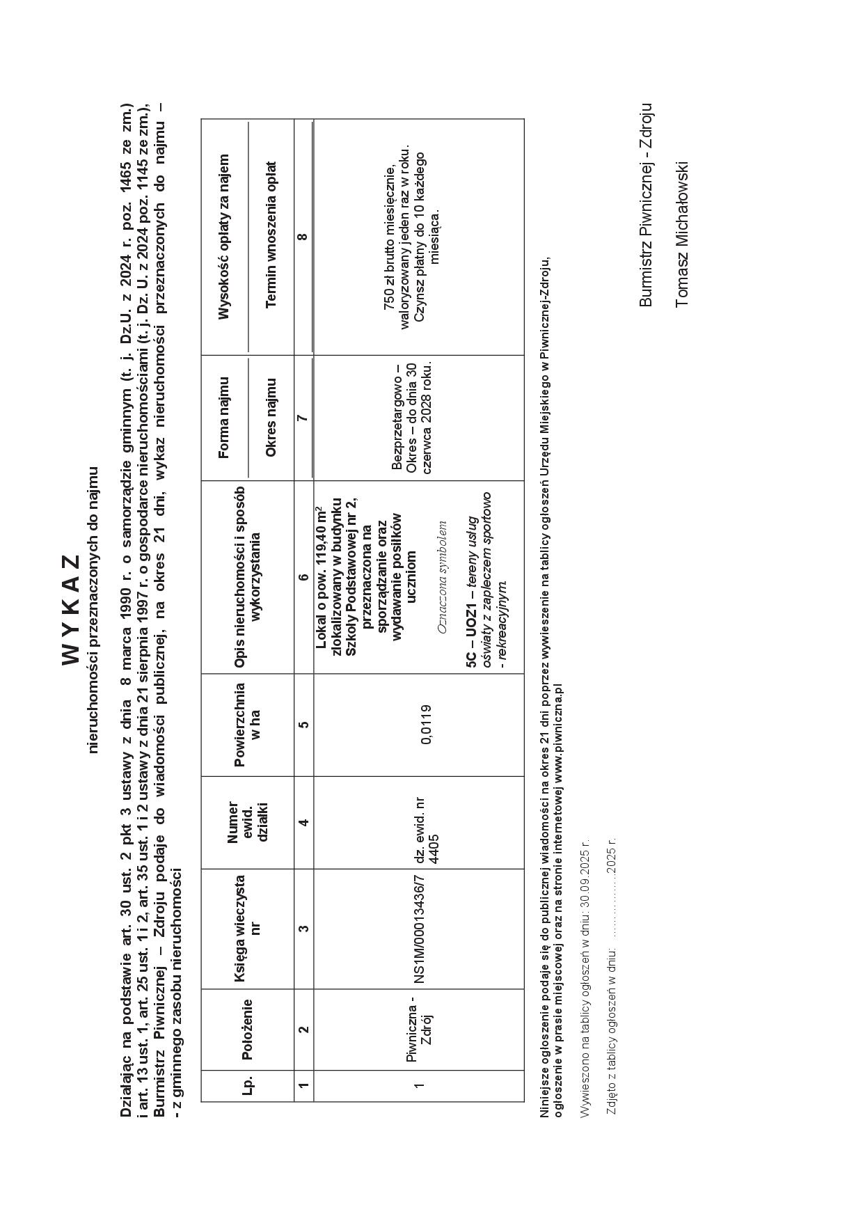 [30.09.2025 r.] WYKAZ nieruchomości przeznaczonych do najmu