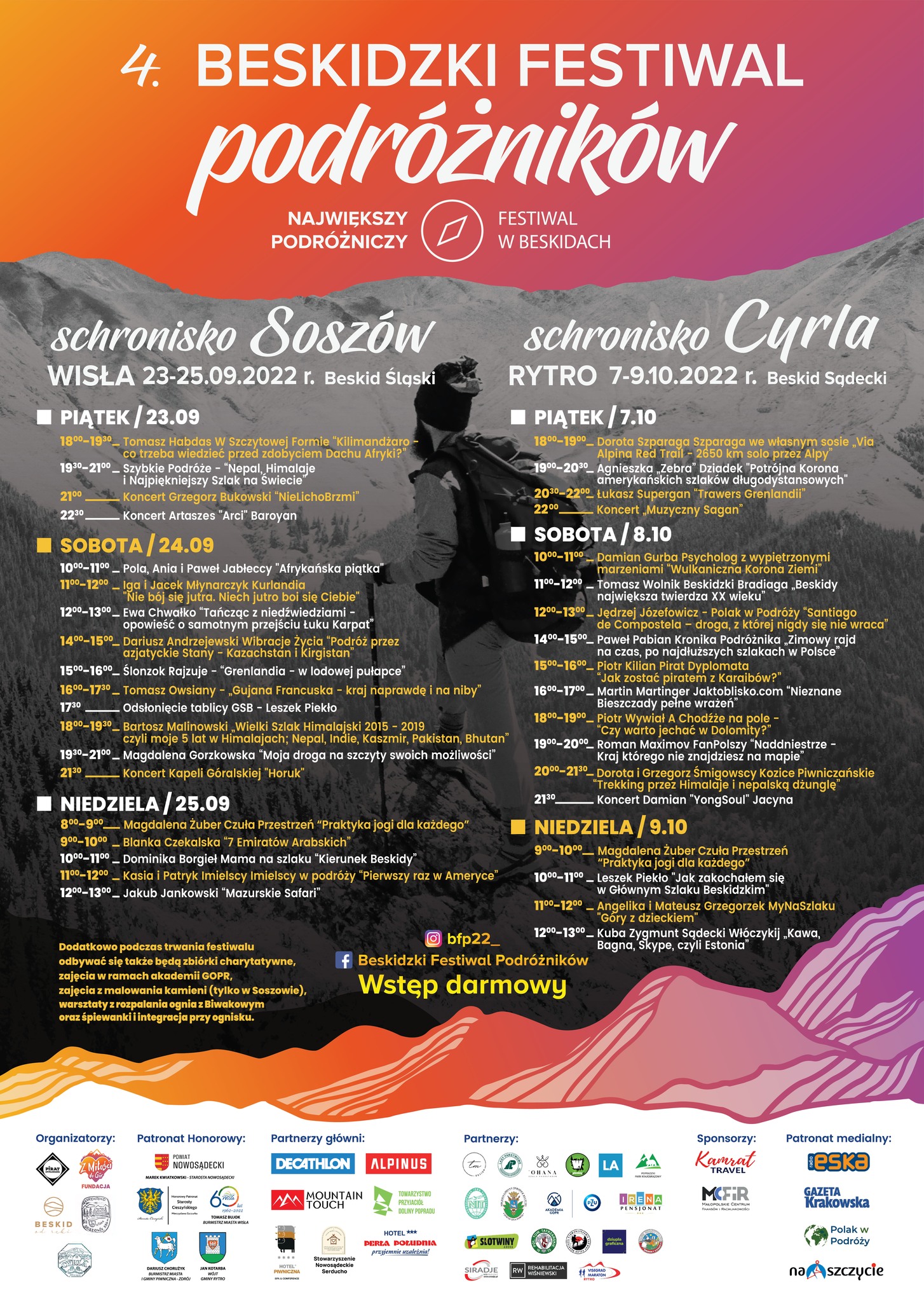 4. Beskidzki Festiwal Podróżników 7-9.10.2022 r. Schronisko Cyrla