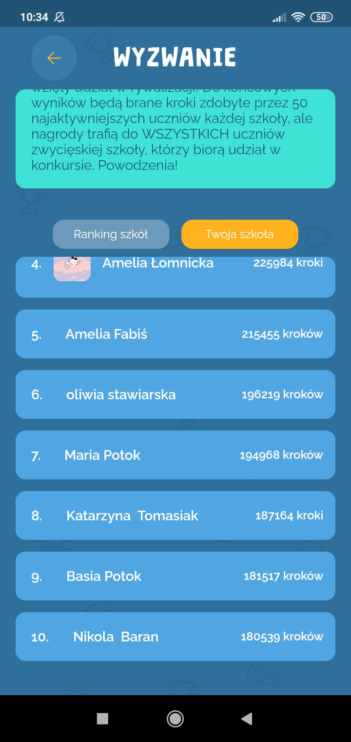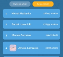 Gratulacje dla wszystkich, którzy się zaangażowali. Najaktywniejsi uczniowie z szkoły, a było ich dziesięciu osiągnęli wynik powyżej 180 000 kroków. Poniżej prezentacja ich: