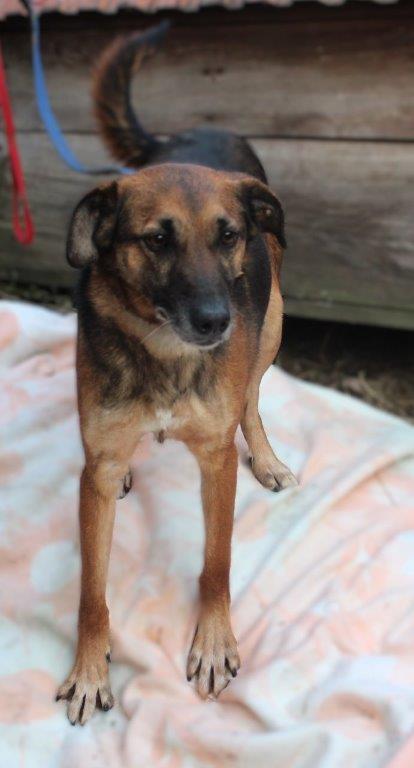 Pies średniej wielkości z krótką, gładką sierścią w kolorze brązowo-czarnym. Ma 5,5 roku , przebywa obecnie w schronisku w Nowym Targu i czeka na adopcję. Potrzebuje kochającego domu.