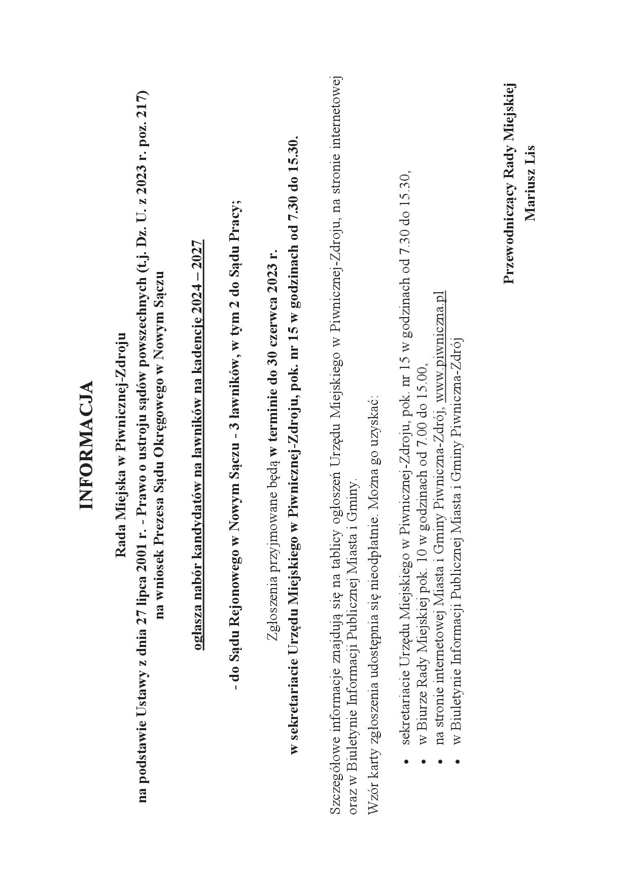 Niniejszym informujemy, że od dnia 14.06.2023 r. (środa) droga gminna na osiedlu Zaczerczyk (od strony Zamakowiska) w Piwnicznej-Zdroju będzie zamknięta w związku z wykonywanymi pracami modernizacyjnymi. W związku z tym będą utrudnienia w ruchu na przedmiotowym odcinku drogi. Przepraszamy za utrudnienia.