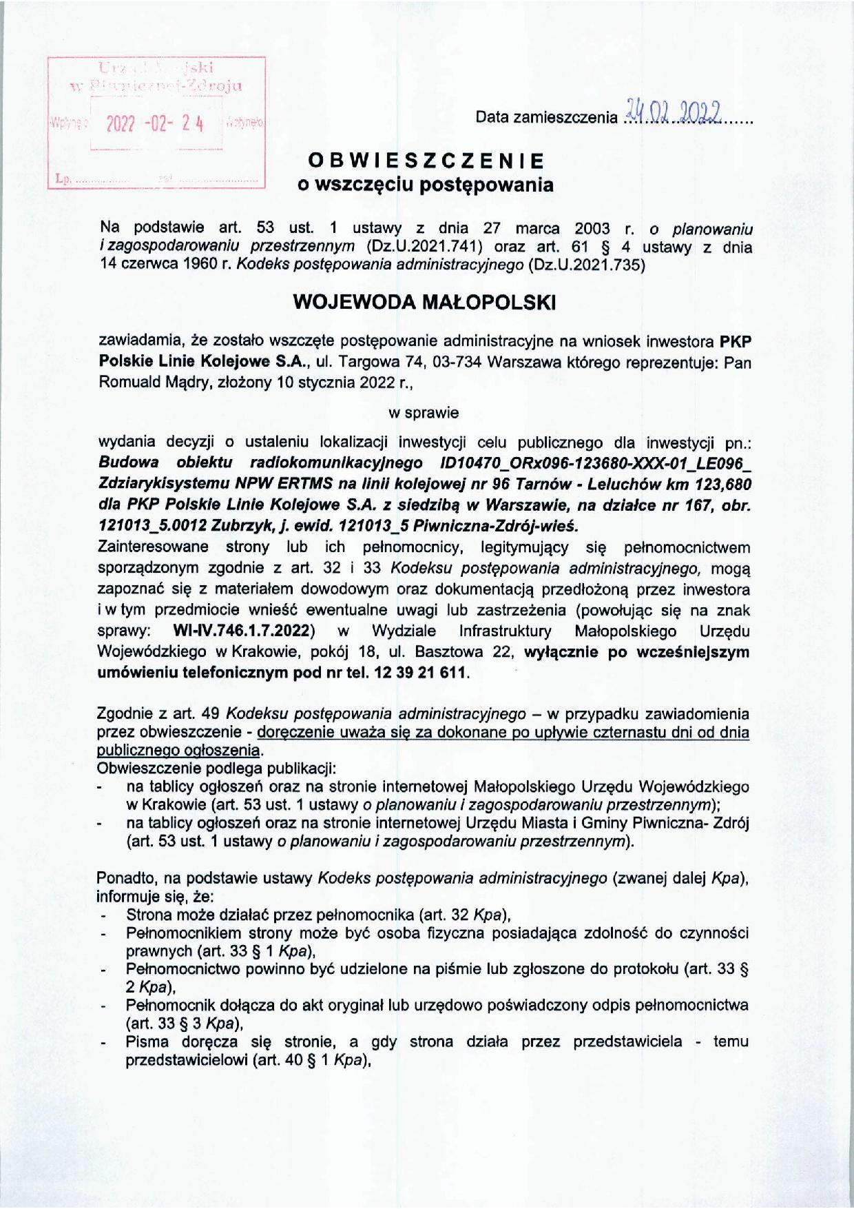 Premier Mateusz Morawiecki podpisał zarządzenie wprowadzające trzeci stopień alarmowy CRP (CHARLIE–CRP) na terytorium całego kraju. Stopień alarmowy obowiązuje od 21 lutego 2022 r. od godz. 21.00 do 4 marca 2022 r. do godz. 23.59. Ostrzeżenie zostało wprowadzone w celu przeciwdziałania zagrożeniom w cyberprzestrzeni. Dotychczas obowiązywał pierwszy stopień alarmowy CRP (ALFA–CRP). Źródło: Rządowe Centrum Bezpieczeństwa.