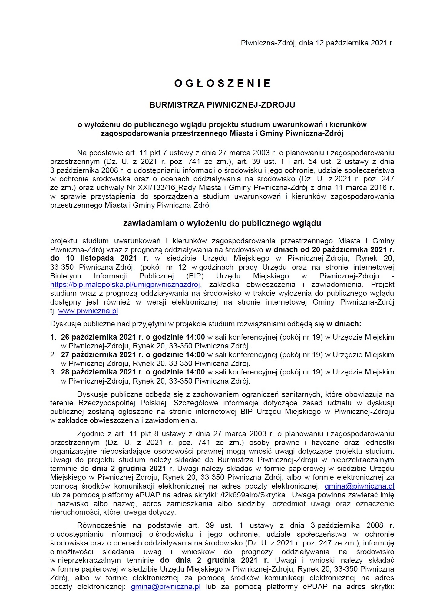 Urząd Miejski w Piwnicznej-Zdroju informuje, że w tym tygodniu do każdego gospodarstwa domowego wysłana została deklaracja do bazy Centralnej Ewidencji Emisyjności Budynków. Wypełnienie deklaracji jest obowiązkowe.