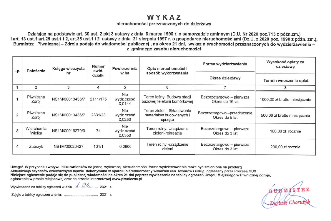 Zawiadamiam, że XXXII Sesja Rady Miejskiej w Piwnicznej-Zdroju, odbędzie się w dniu 29 kwietnia 2021 r. (czwartek) o godz. 10:30 w sali narad Urzędu Miejskiego w Piwnicznej-Zdroju. Przewodniczący Rady Miejskiej Adam Musialski.