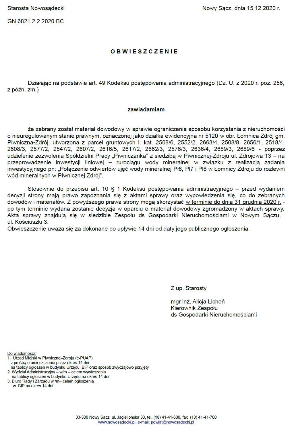 Przedsiębiorstwo Produkcyjno - Handlowo - Usługowe „Zrąb” wykonujący modernizację drogi Piwniczna-Zdrój, Borownice informuje, że w okresie od dnia 04-05.01.2021 r. oraz 07-08.01.2021 r. droga będzie zamknięta od godz. 7:00 do 17:00. Przepraszamy za utrudnienia Prezes Tomasz Klimczyk.