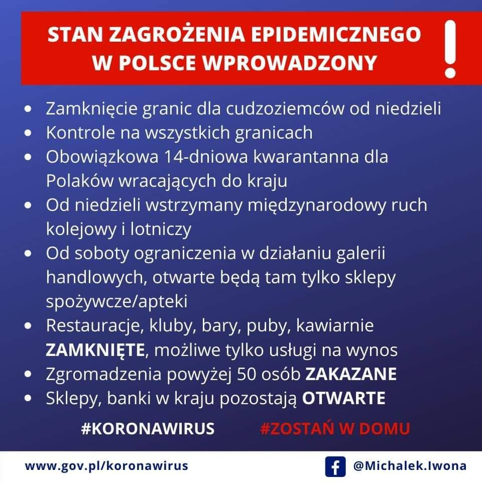 W związku z zagrożeniem epidemicznym i rozprzestrzenianiem się koronawirusa w okresie od 15 marca br. do 24 marca br. będzie tymczasowo przywrócona kontrola graniczna na granicy wewnętrznej. Granicę Polski z Niemcami, Litwą, Czechami i Słowacją będzie można przekraczać tylko w wyznaczonych miejscach. Kontrole będą również prowadzone w portach morskich i na lotniskach.