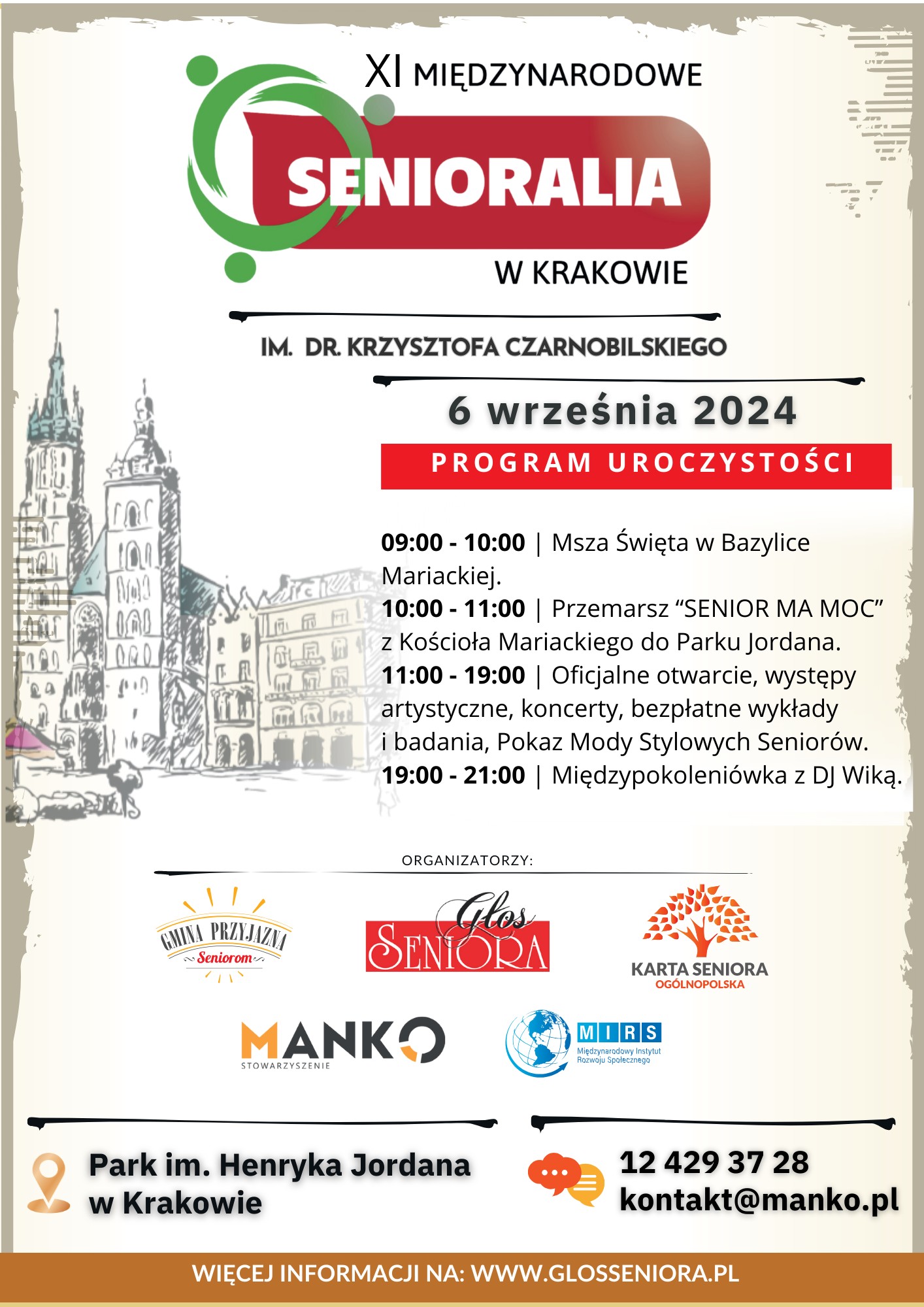 ZAPISY! Zapraszamy na wyjazd i udział w wydarzeniu pt. "XI Międzynarodowe Senioralia w Krakowie" 06.09.2024 r.
