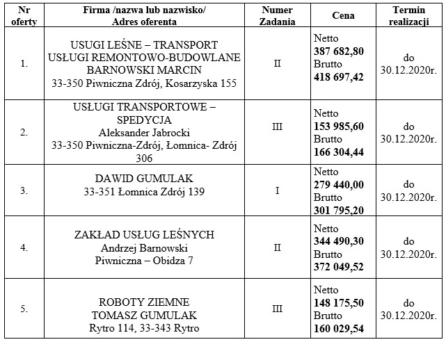 [2020-02-03] ZL-D: Informacja z sesji otwarcia ofert na "Usługi z zakresu gospodarki leśnej" na 2020 r.