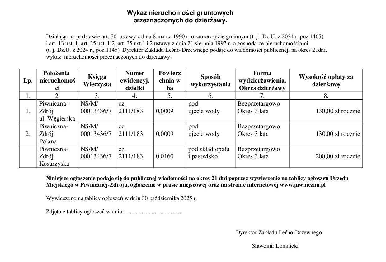 [2025-10-30] ZL-D: Wykaz nieruchomości gruntowych przeznaczonych do dzierżawy