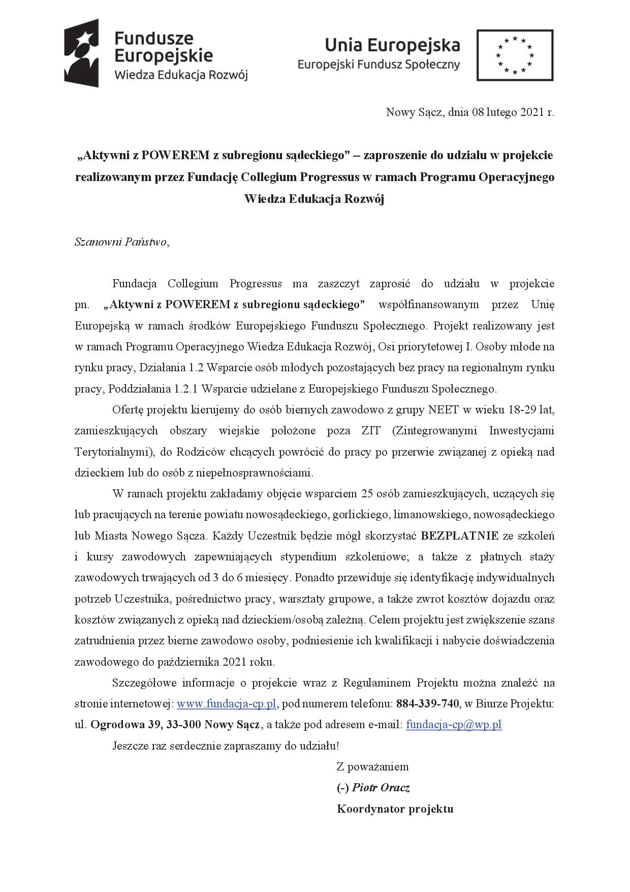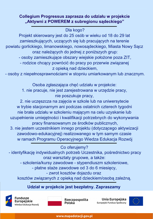 „Aktywni z POWEREM z subregionu sądeckiego” – zaproszenie do udziału w projekcie
