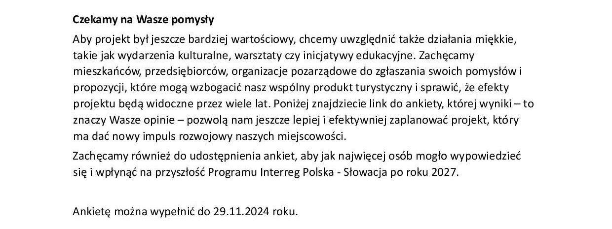ANKIETA: Zapraszamy do udziału w konsultacjach nt. przyszłego projektu w ramach współpracy transgranicznej Interreg na polsko-słowackim pograniczu