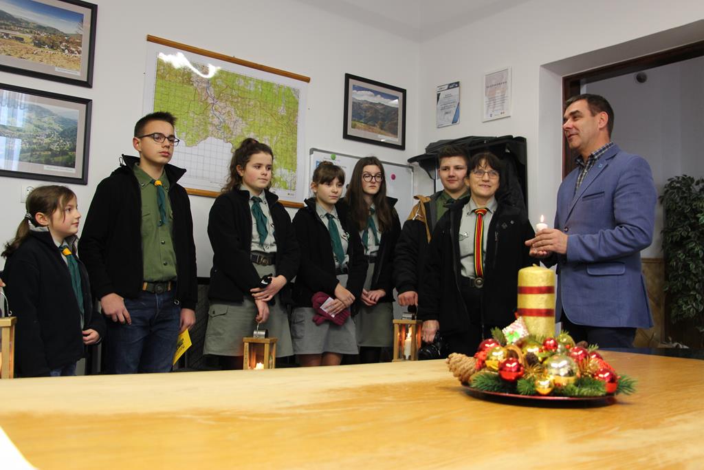 Burmistrz Piwnicznej-Zdroju Dariusz Chorużyk gościł w Urzędzie Miejskim sztafetę harcerzy, którzy przynieśli i przekazali Betlejemskie Światło Pokoju. Podczas spotkania było wspólne kolędowanie i wzajemne składanie życzeń.