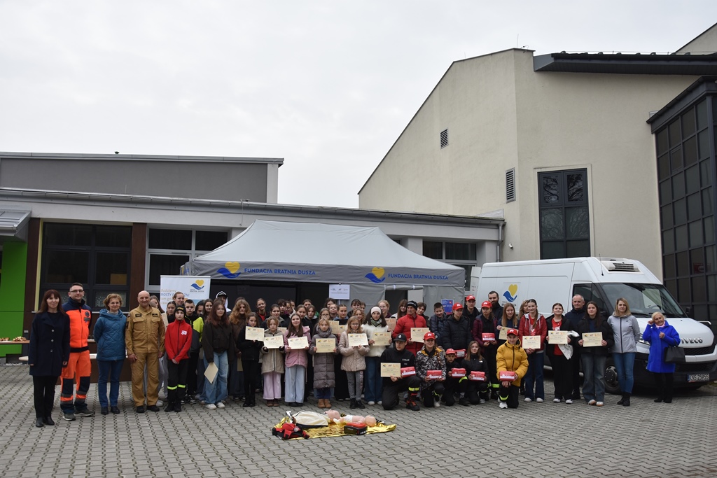Spotkanie wypełniły szkolenia z pierwszej pomocy, zachowania w sytuacjach kryzysowych oraz praktyczne ćwiczenia prowadzone przez profesjonalistów: mł. bryg. Dariusza Cieślę z PSP w Nowym Sączu oraz ratownika medycznego Mateusza Bołoza. Całość wydarzenia poprowadziła Iwona Romaniak, Prezes Fundacji Bratnia Dusza, koordynująca projekt wraz z mężem. Ze strony naszej szkoły działania wspierała Pani Krystyna Dziedzina, nauczycielka-bibliotekarz ZSP nr 1.