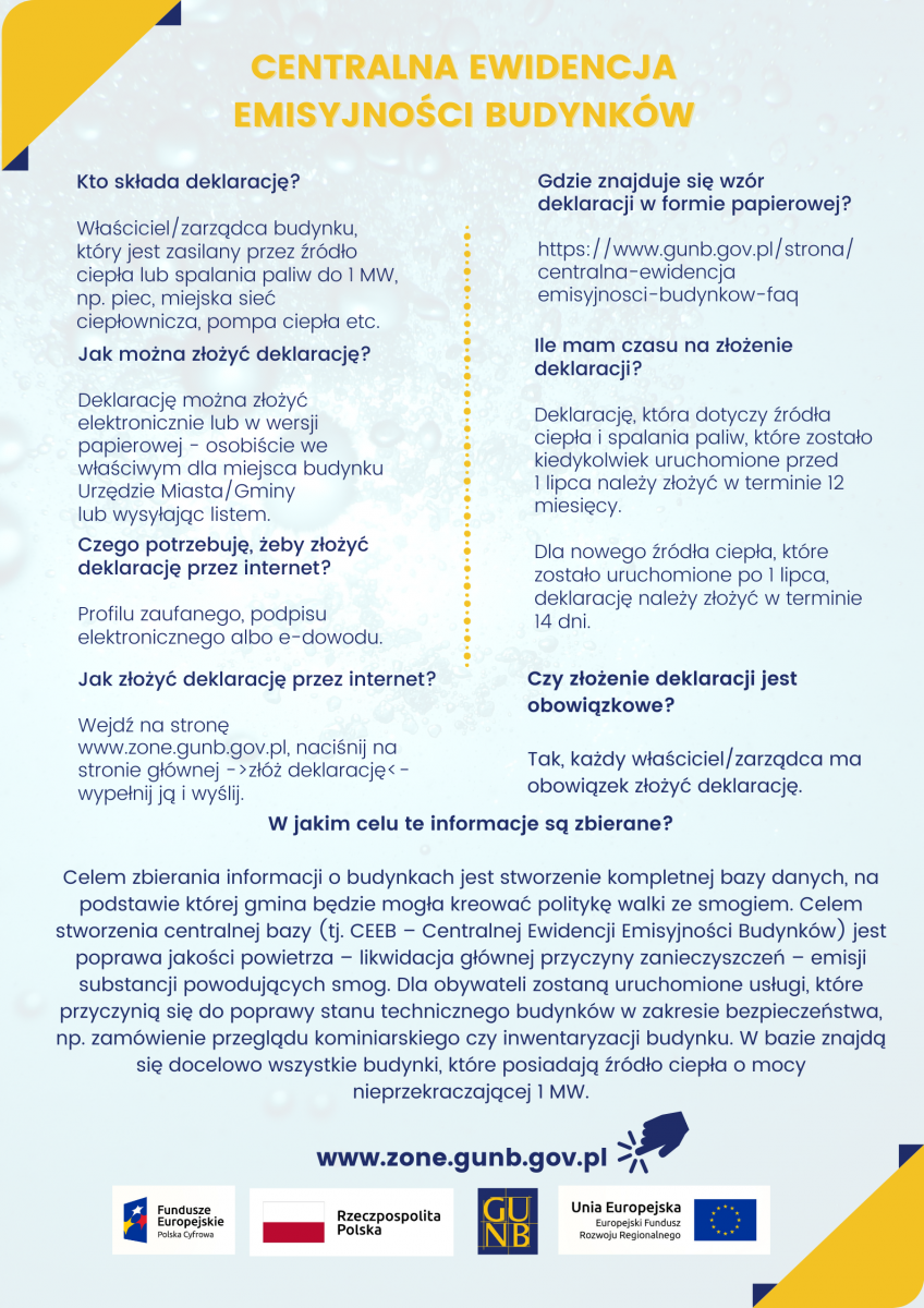 - Deklarację można złożyć także elektronicznie w przypadku, gdy właściciel posiada profil zaufany: https://zone.gunb.gov.pl/