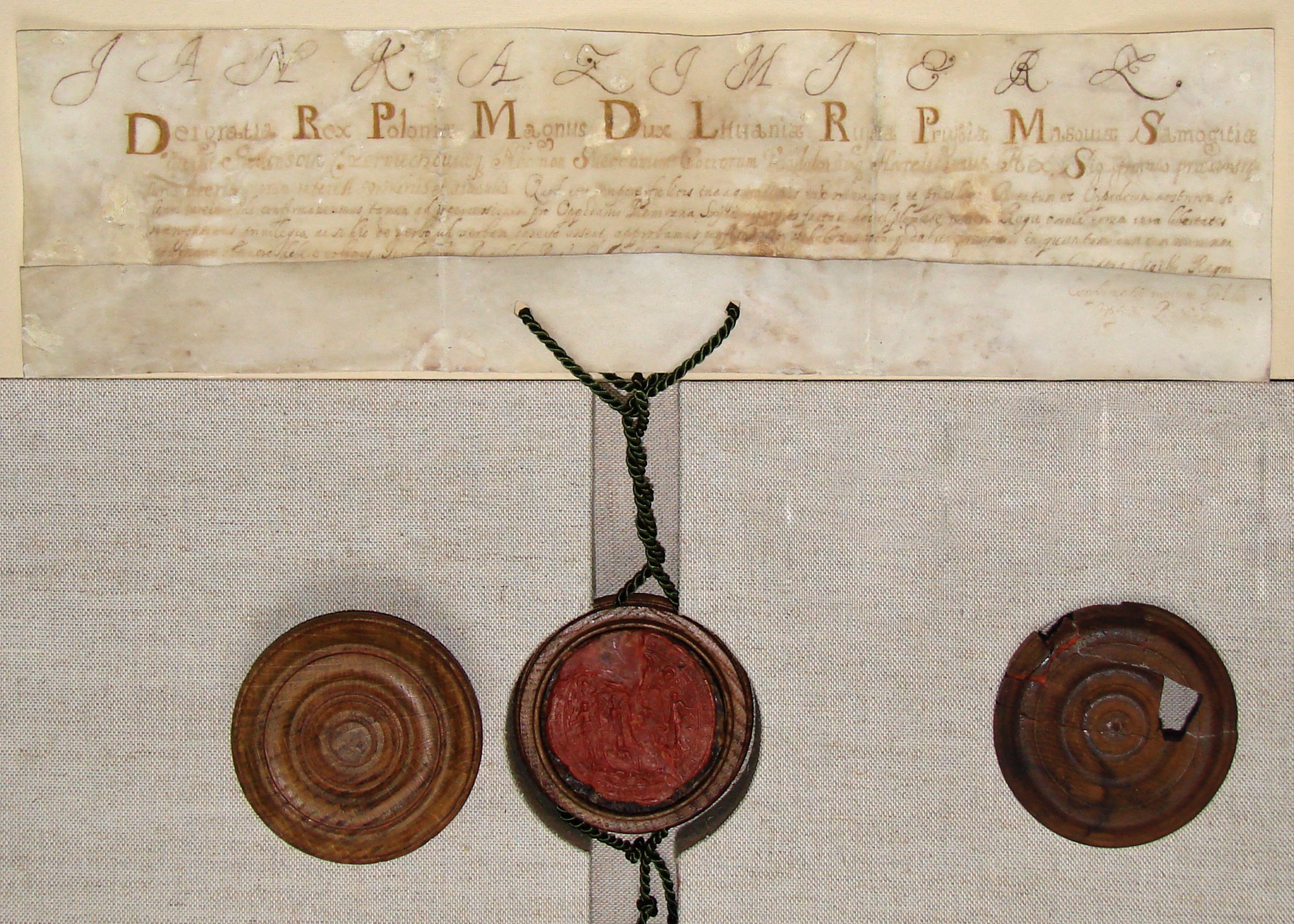 - Dokument króla polskiego Zygmunta III Wazy wystawiony w Krakowie dnia 5 marca 1596 r.