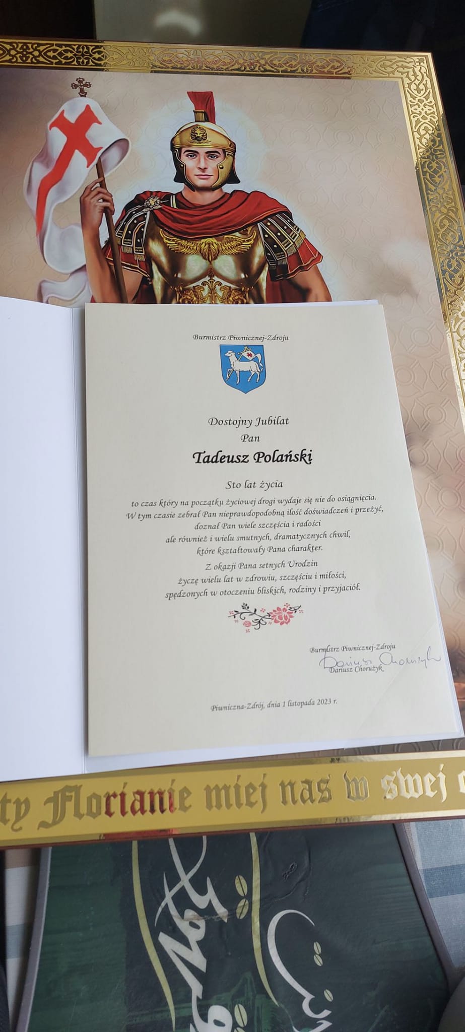 Są wśród nas świadkowie historii, ludzie, którzy własną osobą i własnym życiem zaświadczają o świetności Miasta i Gminy Piwniczna-Zdrój. Bez tych ludzi, my współcześni, nie wiedzielibyśmy jak wyglądały czasy minione i z jakimi trudnościami dnia codziennego musieli zmagać się mieszkańcy naszej gminy. Bez takich ludzi jak nasz szacowny JUBILAT, nie moglibyśmy cieszyć się dzisiejszą Piwniczną.