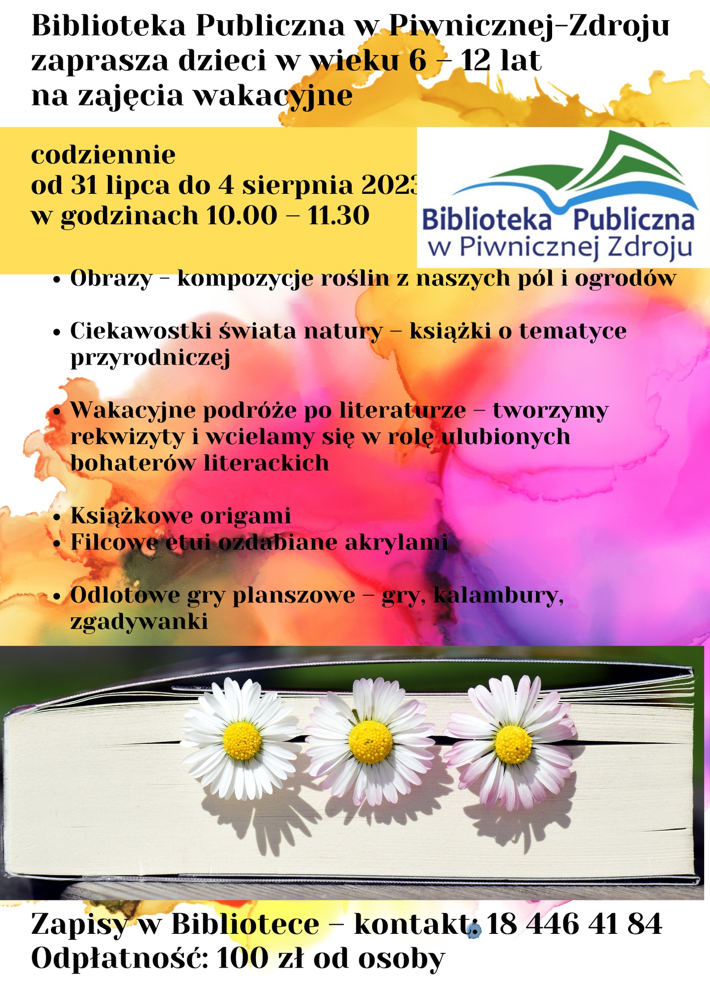 Biblioteka w Piwnicznej-Zdroju zaprasza dzieci w wieku 6-12 lat na zajęcia wakacyjne