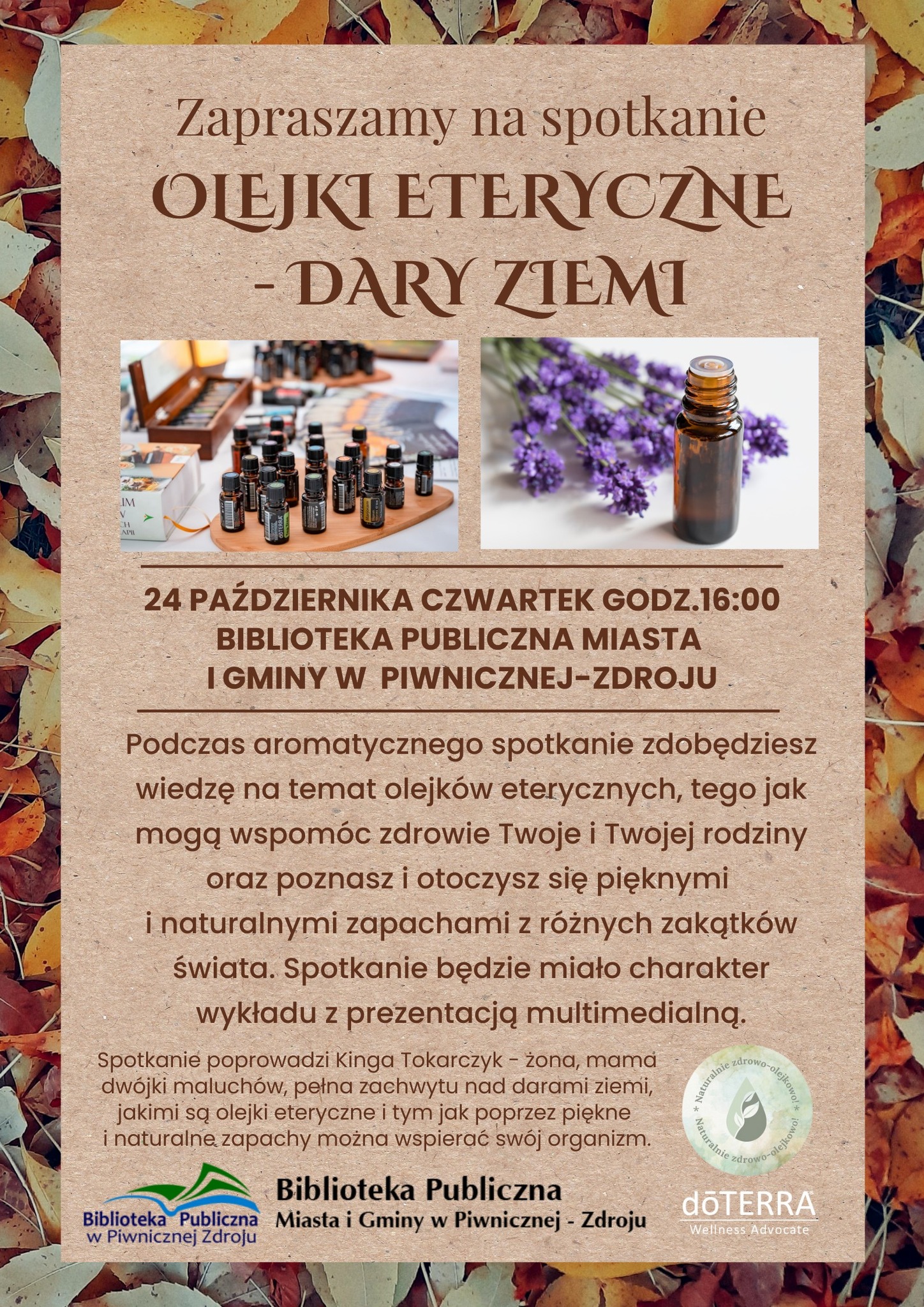 BIBLIOTEKA zapraszana na spotkanie pt. Olejki Eteryczne - Dary Ziemi