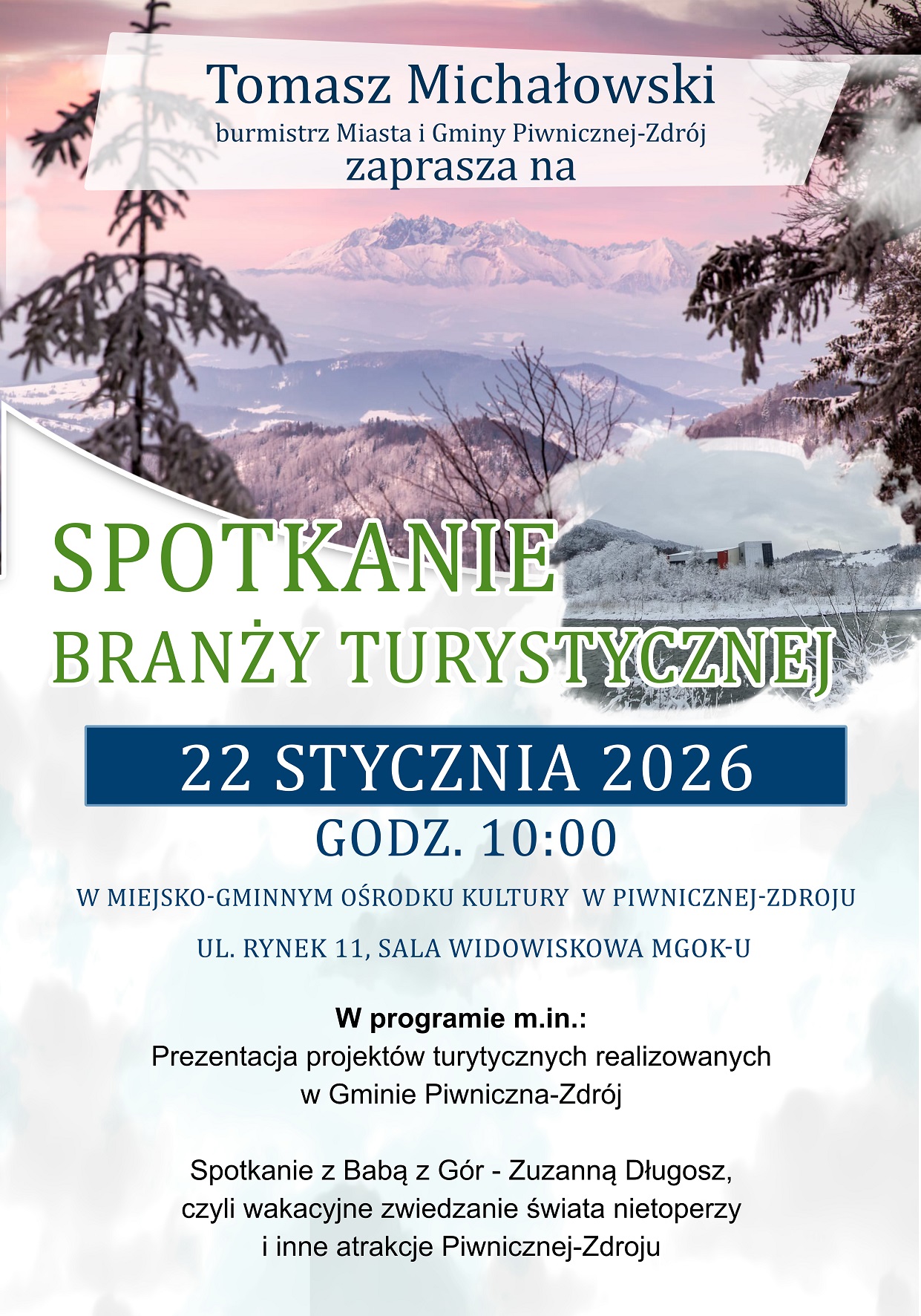 Burmistrz Piwnicznej-Zdroju zaprasza na spotkanie branży turystycznej godz. 10:00 w MGOK