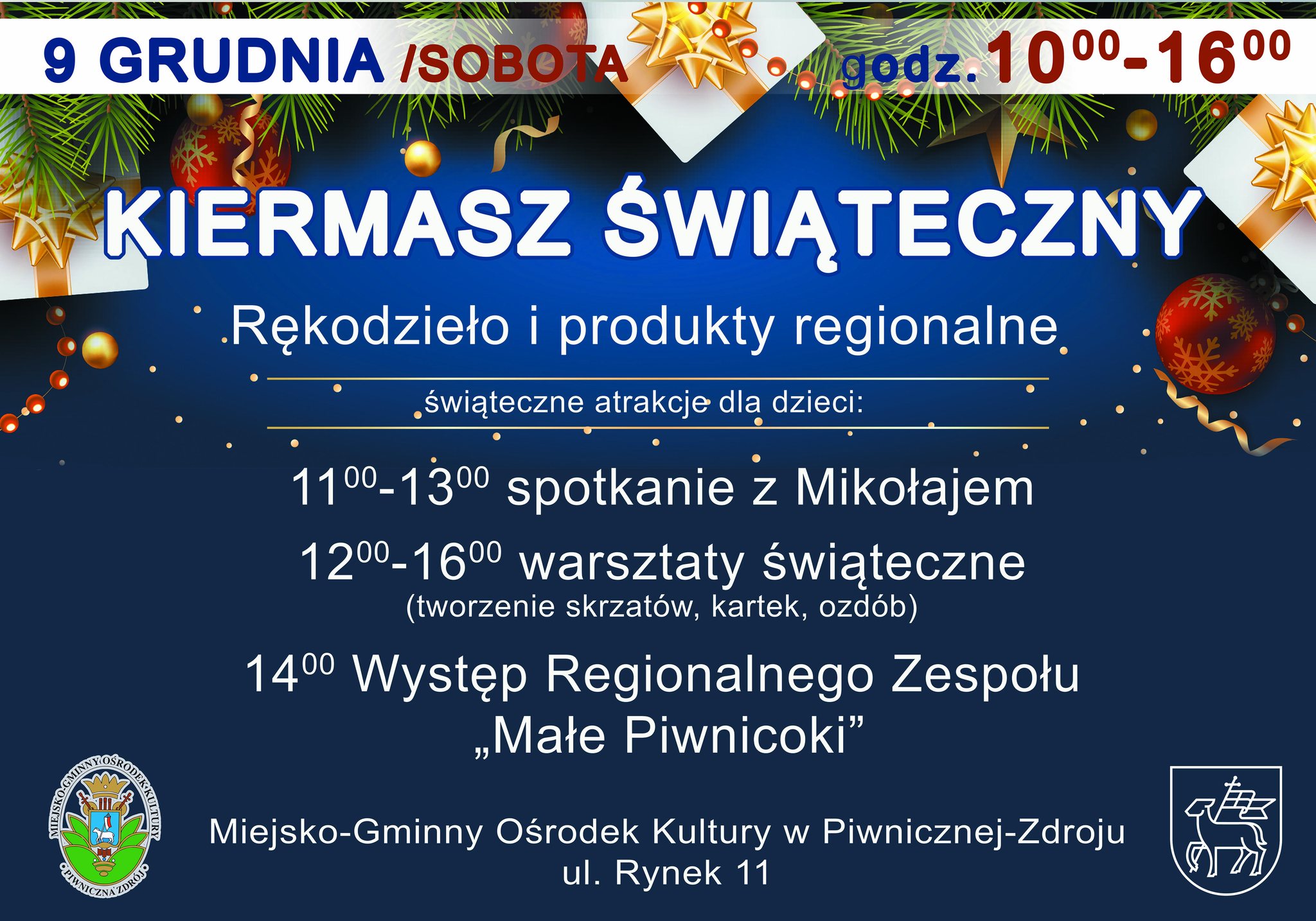 Zapraszamy na KIERMASZ ŚWIĄTECZNY na Rynku w Piwnicznej-Zdroju