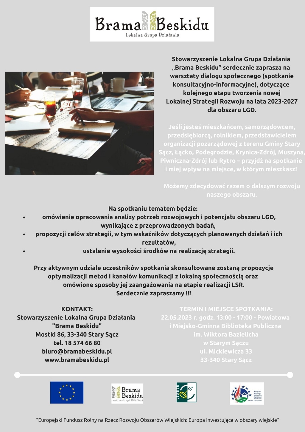 LGD Brama Beskidu zaprasza na warsztaty dialogu społecznego w Starym Sączu