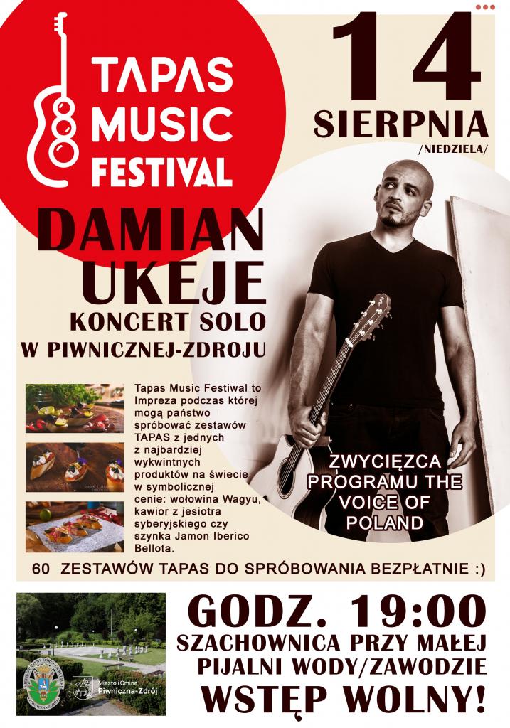 TAPAS MUSIC FESTIWAL: Koncert solo w Piwnicznej-Zdroju Damian Ukeje godz. 19:00 WSTĘP WOLNY!