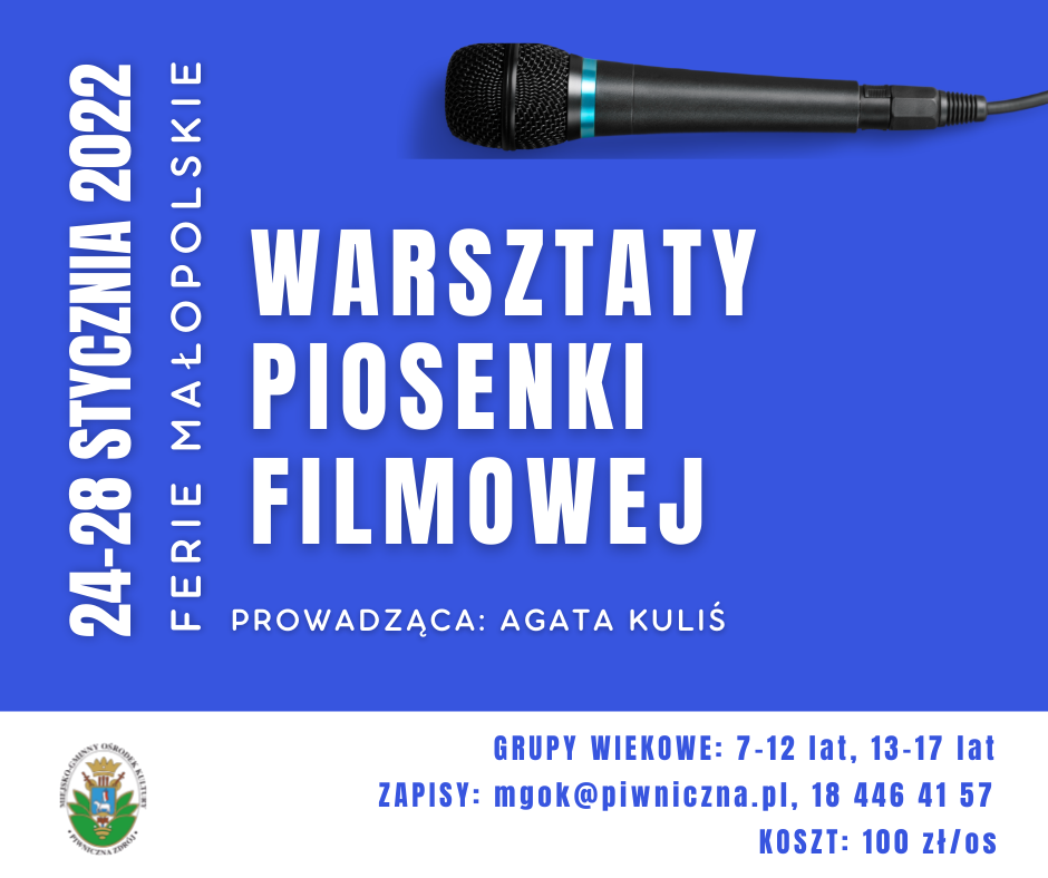 Warsztaty piosenki filmowej Prowadząca: Agata Kuliś ZAPISY!!!