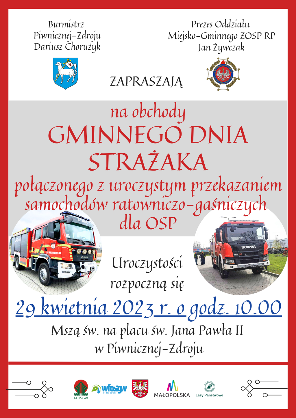 Zapraszamy na Gminny Dzień Strażaka i uroczyste przekazanie samochodów dla OSP godz. 10:00