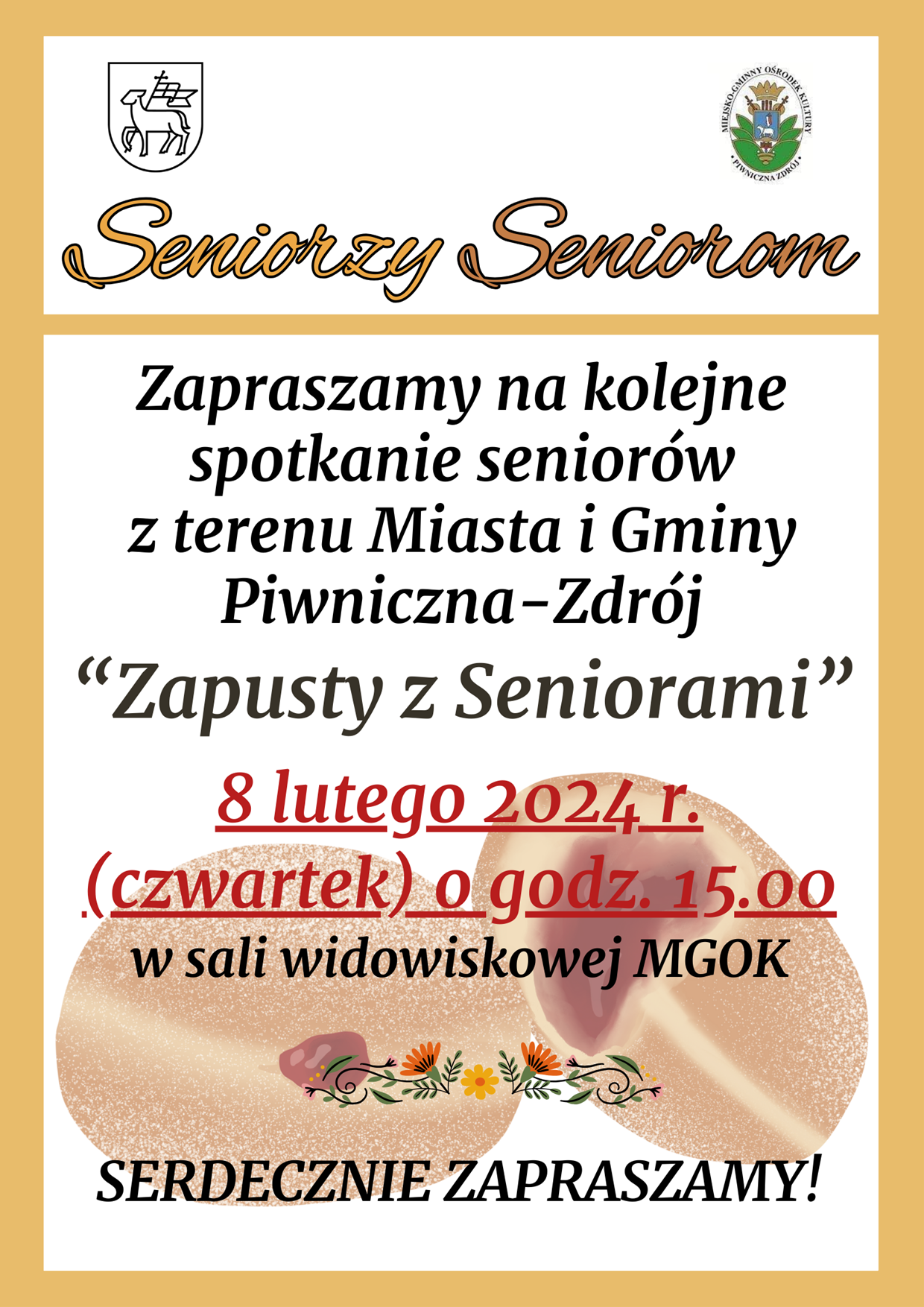 Zapraszamy na kolejne spotkanie seniorów z serii Seniorzy Seniorom pt. "Zapusty z Seniorami"