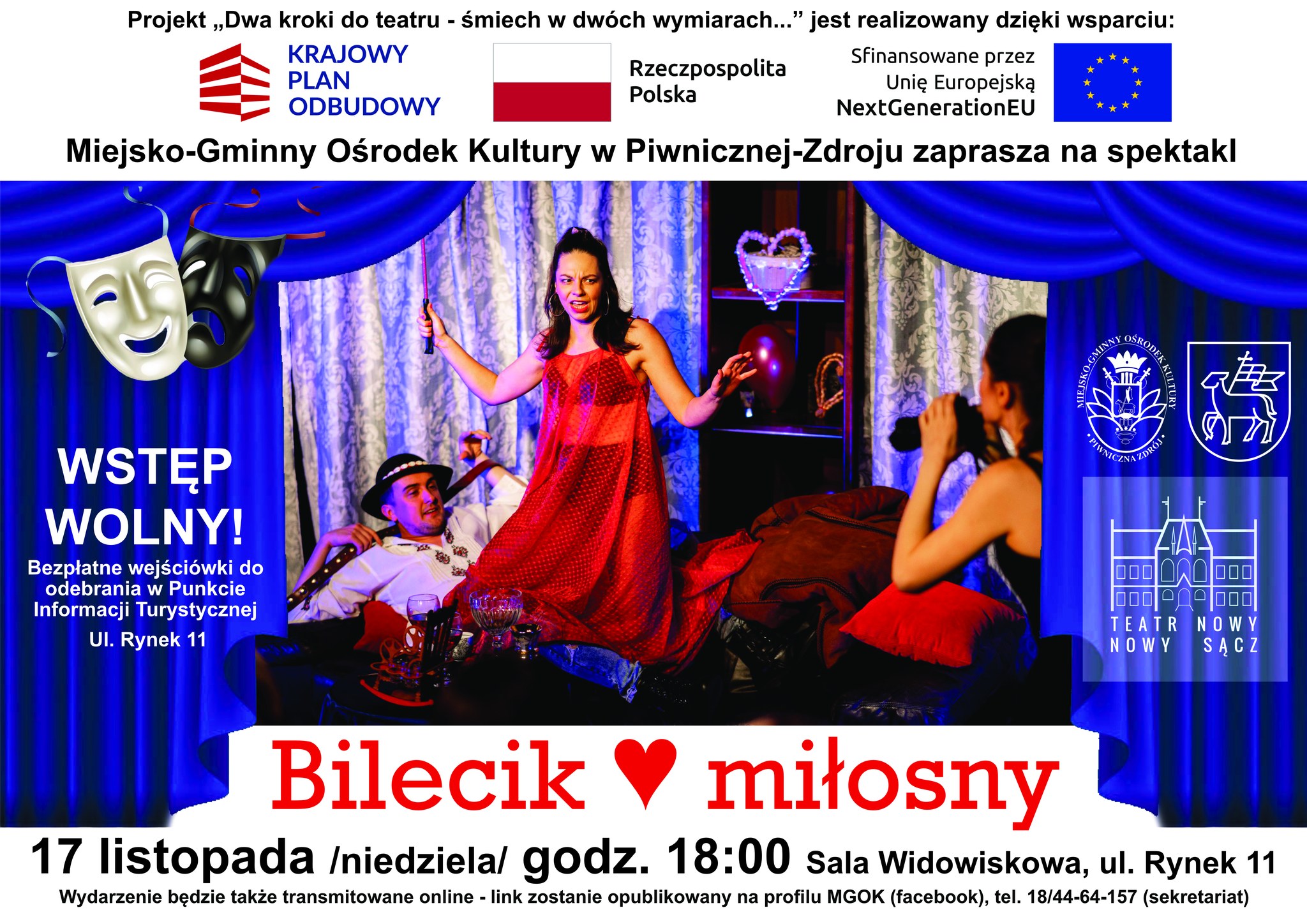 Zapraszamy na spektakl pt. ”Bilecik miłosny” w MGOK. Bezpłatne wejściówki!