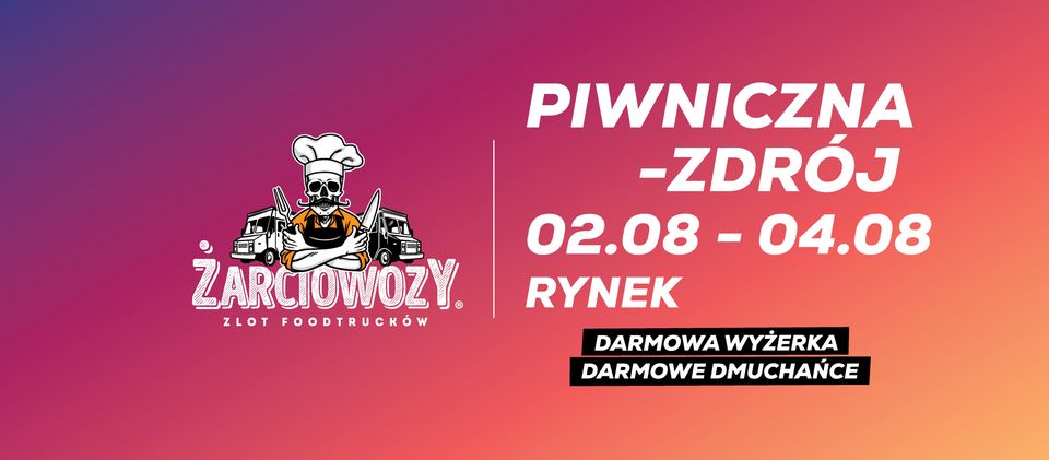 Przygotowaliśmy dla Was coś specjalnego! Na Żarciowozach każdego dnia zlotu - przez pierwszą godzinę będziemy... UWAGA! Wydawali ZA DARMO porcje degustacyjne z każdego Foodtrucka! Ale to nie koniec atrakcji. Śledźcie nasze wydarzenie na FB, aby żadna informacja Wam nie umknęła! Także nie zwlekajcie i dzwońcie po znajomych! Dajcie znać komu tylko się da, bo Żarciowozy nadjeżdżają!