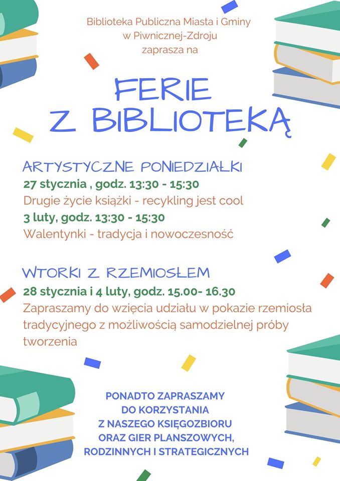 Serdecznie zapraszamy dzieci i młodzież z terenu Miasta i Gminy Piwniczna-Zdrój do bezpłatnego korzystania w okresie ferii małopolskich 2020 ze ścianki wspinaczkowej, lodowiska na Radwanowie oraz do udziału w warsztatach wokalu z Agatą Kuliś. Szczegóły i godziny poszczególnych ofert na plakatach poniżej.