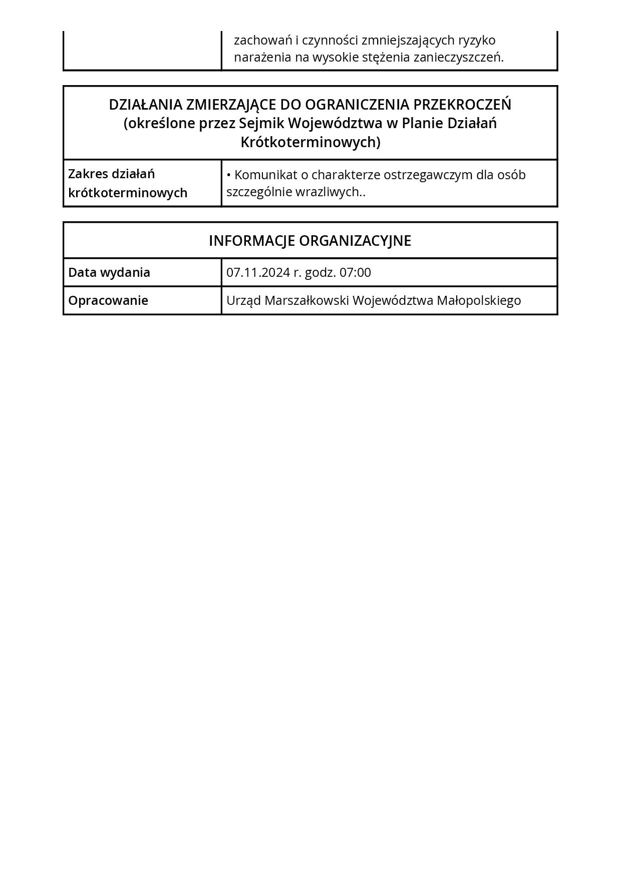 GIOŚ: Powiadomienie o ryzyku wystąpienia przekroczenia średniodobowego poziomu dopuszczalnego dla pyłu zawieszonego PM10 w powietrzu w dniu 07.11.2024 r.