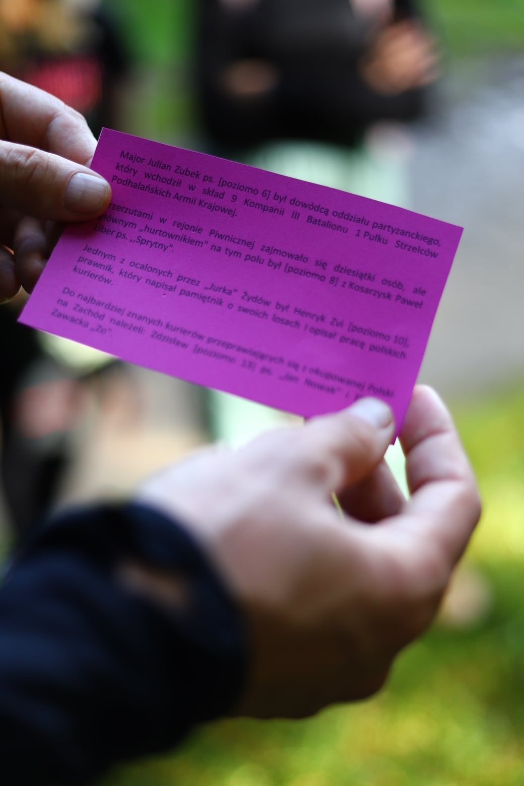 28 września w ramach Rajdu Kurierów Przez Zielone Granice odbyła się gra terenowa pt. "Pod nosem okupantów". W grze wzięły udział wszystkie szkoły z terenu Gminy Piwniczna-Zdrój. Uczestnicy mieli za zadanie wcielić się w rolę kuriera wojennego i dotrzeć do Bazy W. Musieli przy tym być sprytni jak kurier, dyskretni jak kurier, odważni jak kurier, sprawni jak kurier, odpowiedzialni jak kurier i niezawodni jak kurier. Na trasie zorganizowano specjalne punkty sprawdzające czy uczestnicy posiadają odpowiednie sprawności aby wykonać powierzone im zadanie. Niezbędne było również posiadanie odpowiedniej wiedzy, którą uczestnicy mogli zdobyć zapoznając się z materiałami przygotowanymi przez młodzież biorącą udział w trwającym od maja projekcie "Pod nosem okupantów". Gra odbyła się na terenie Suchej Doliny nazywanej w czasach wojennych "Doliną śmierci", gdzie dziś mieści się tablica upamiętniająca kurierów, łączników i przewodników (oraz ludzi udzielających im schronienia), którzy organizowali w czasie II wojny światowej przerzuty ludzi, broni, wiadomości i pieniędzy na trasie Warszawa – Budapeszt.