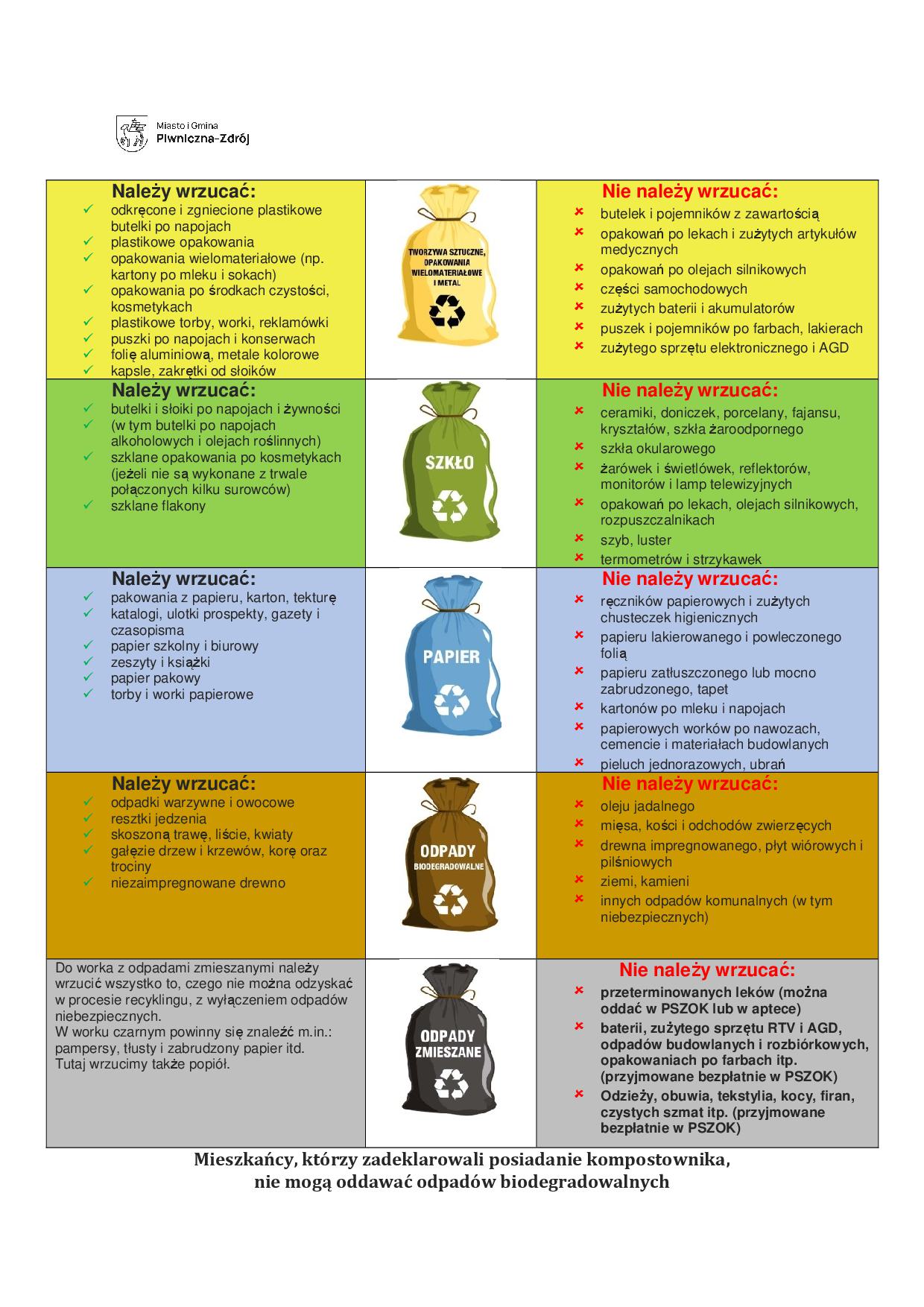 - Uchwała nr XII/92/2024 RADY MIEJSKIEJ W PIWNICZNEJ-ZDROJU z dnia 28 listopada 2024 r. w sprawie zmiany uchwały o wyborze metody ustalenia opłaty i ustalenia stawki opłaty za gospodarowanie odpadami komunalnymi, stawki opłaty za pojemnik oraz ryczałtowej stawki opłaty od domku letniskowego lub nieruchomości wykorzystywanej na cele rekreacyjno-wypoczynkowej.