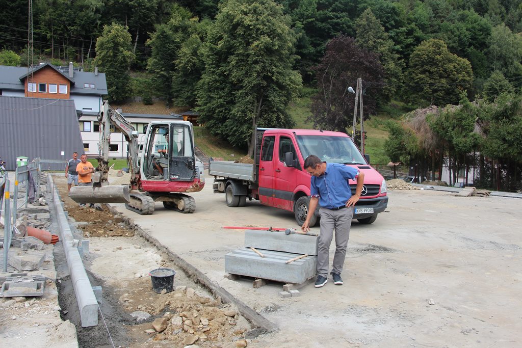 Wizyta Burmistrza Piwnicznej-Zdroju Dariusza Chorużyka na modernizowanej drodze w kierunku osiedla Trześniowy Groń oraz na budowie boiska wielofunkcyjnego w Piwnicznej-Zdroju przy Szkole Podstawowej w Kosarzyskach.