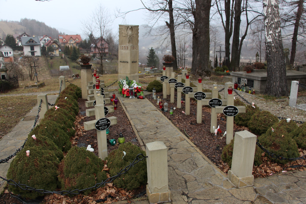 Centralne miejsce nekropolii zajmuje grób – pomnik ku czci osób poległych w czasie II wojny światowej.