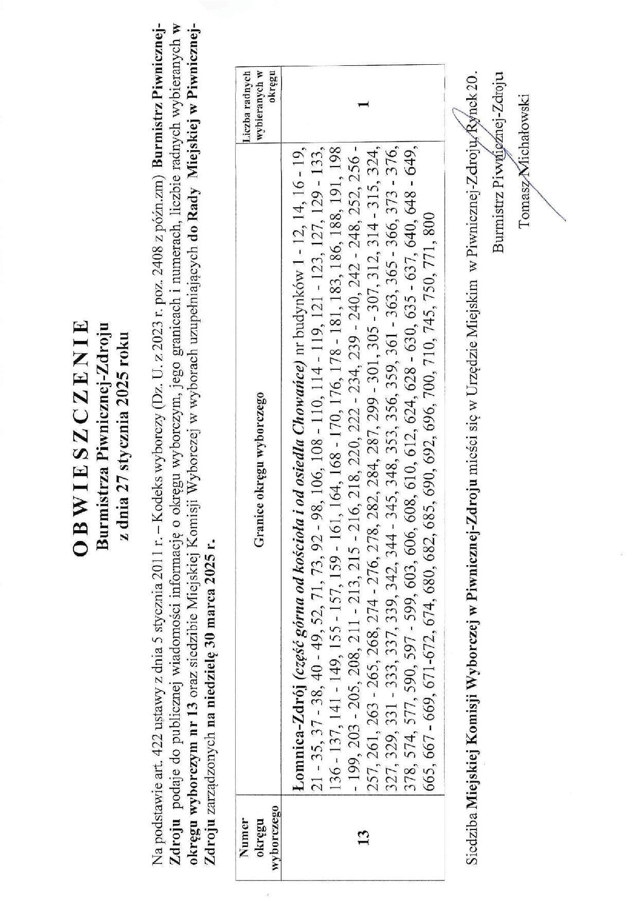 INFORMACJA Burmistrza Piwnicznej-Zdroju z dnia 27.01.2025 r. dot. wyborów uzupełniających do Rady Miejskiej