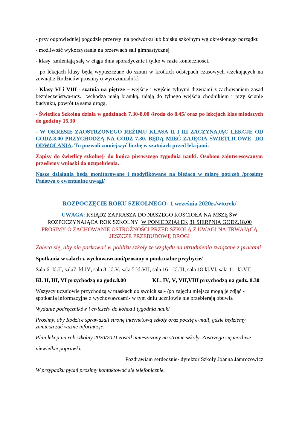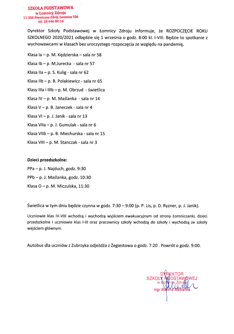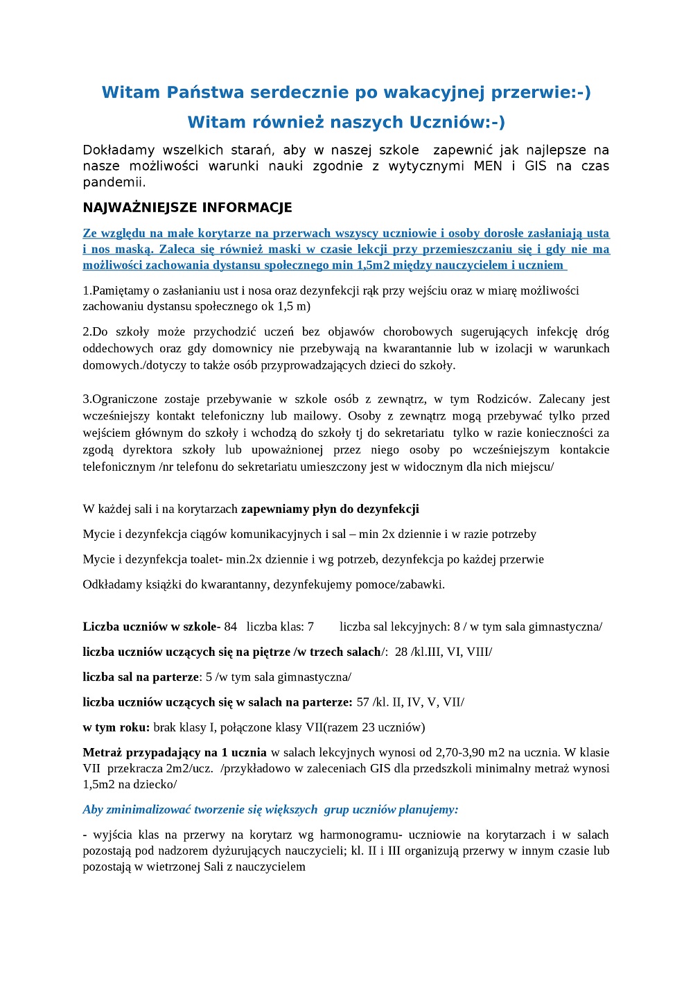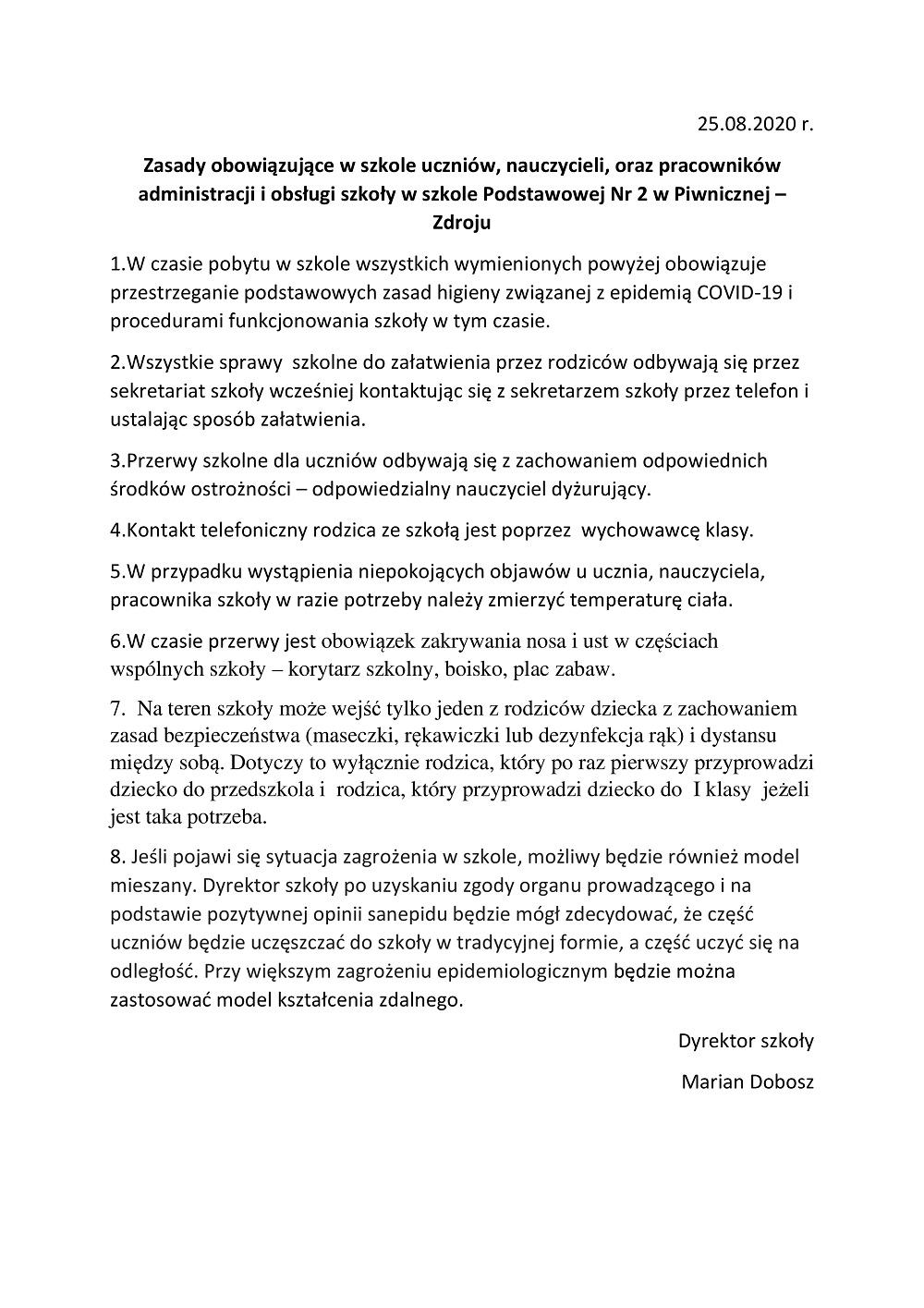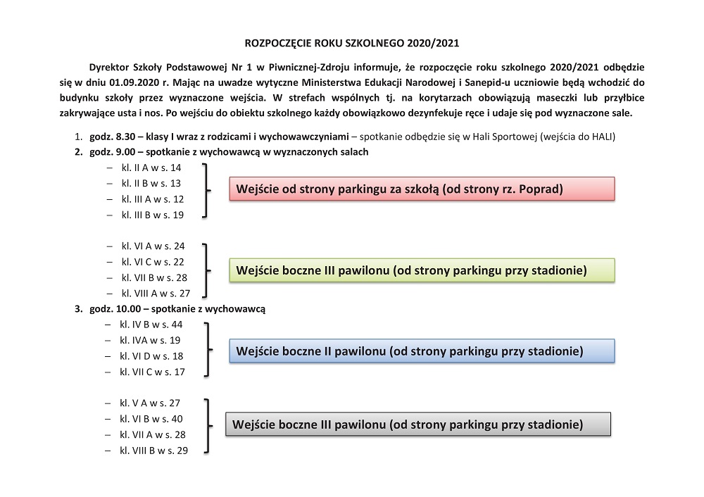 Informacje i zasady dot. rozpoczęcie roku szkolnego 2020/2021 na terenie Miasta i Gminy Piwniczna-Zdrój