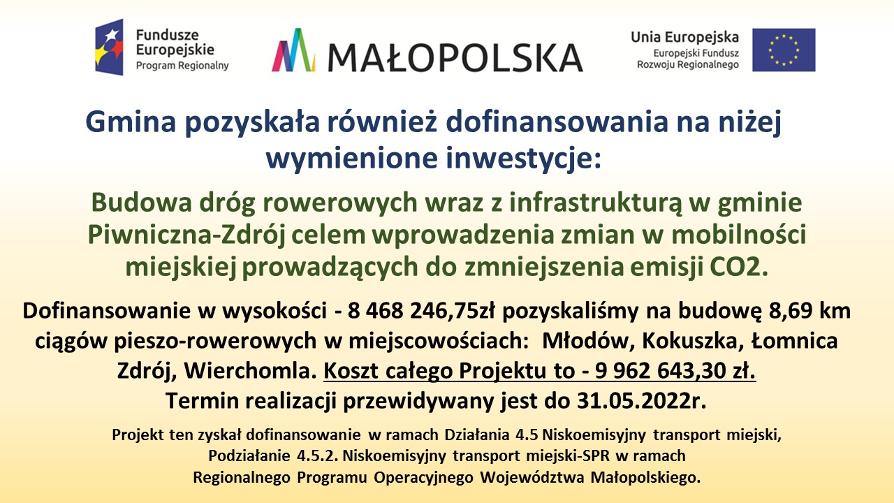 Inwestycje – Projekty realizowane w 2019 roku na terenie Miasta i Gminy Piwniczna-Zdrój