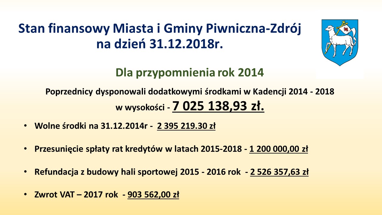 Miasto i Gmina Piwniczna-Zdrój w trosce o lepsze jutro, przedstawia Mieszkańcom, Gościom oraz Turystom prezentacje dotyczącą inwestycji oraz realizowanych projektów w 2019 roku. Prezentacja jest do pobrania w pliku PDF lub w postaci plików JPEG jako galeria slajdów prezentacji.