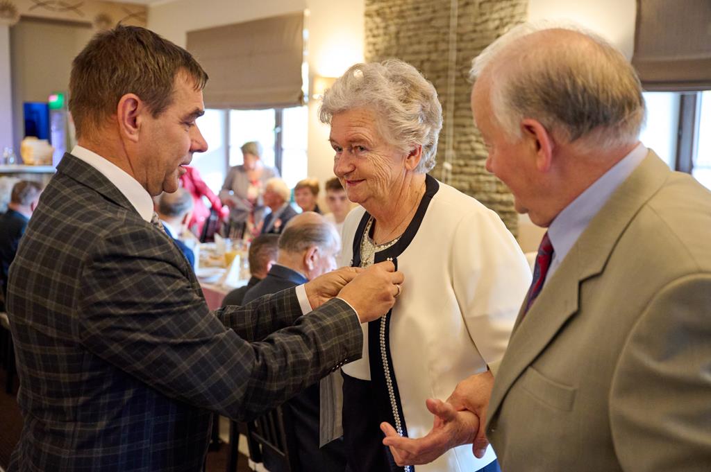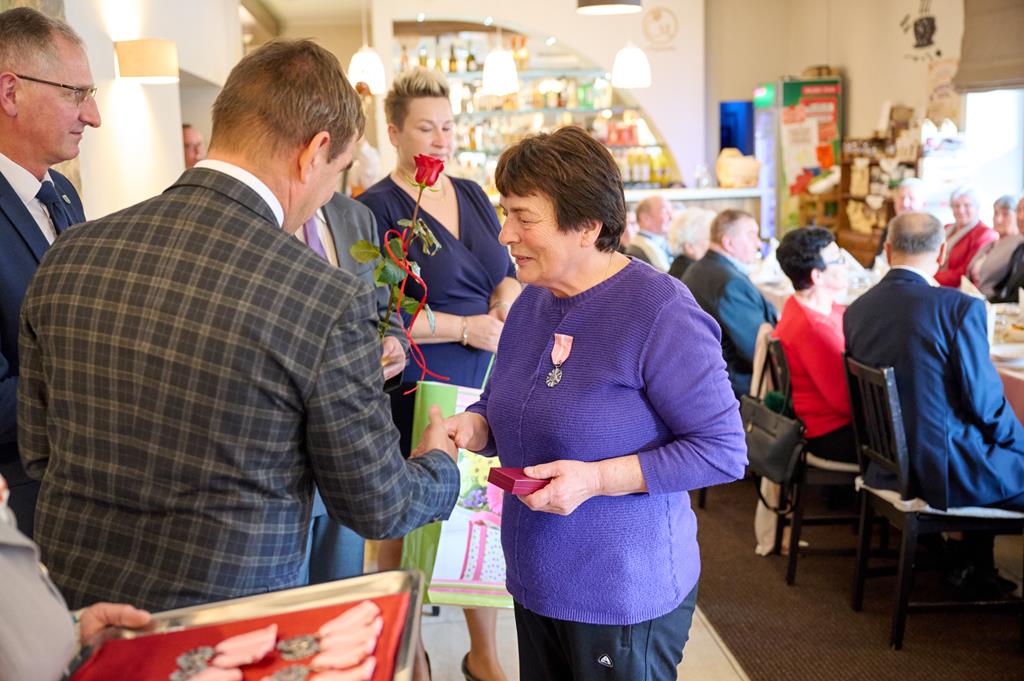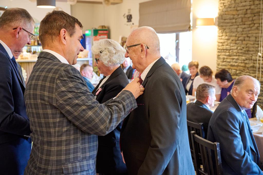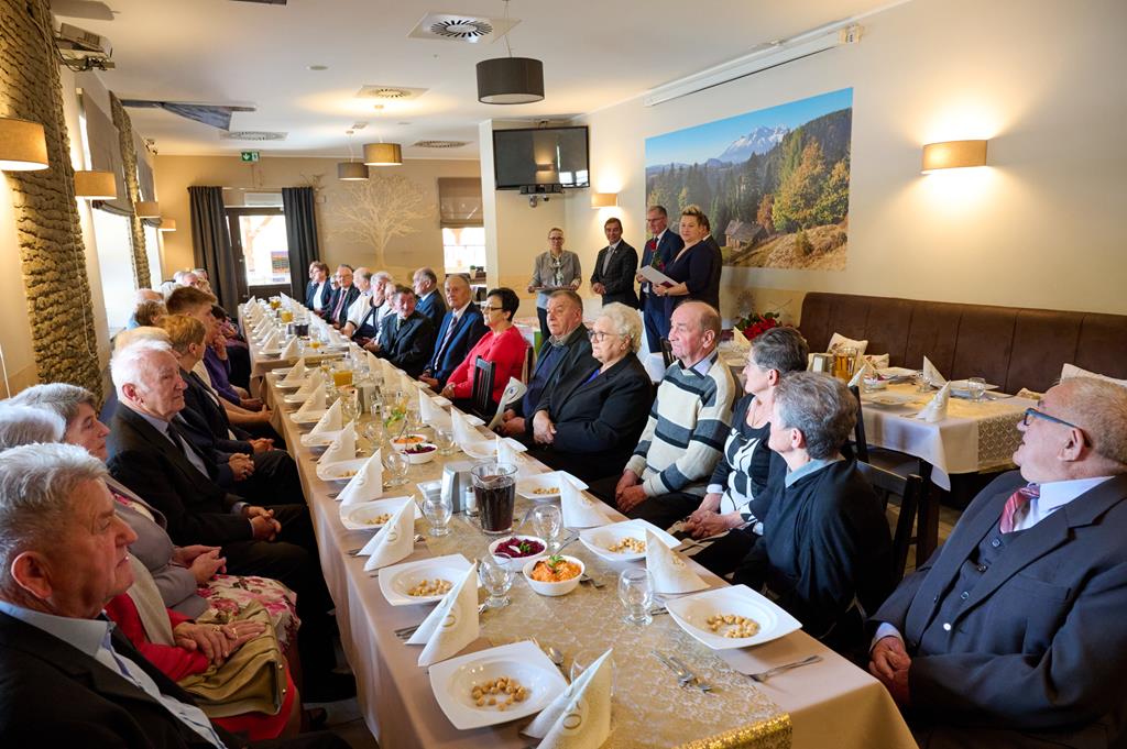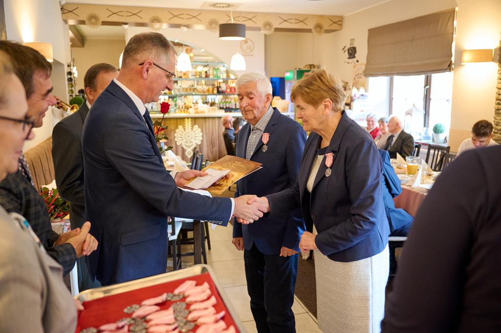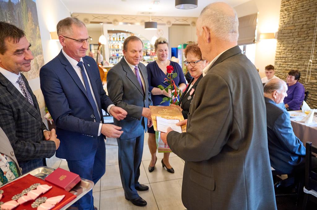 Oprócz medali Jubilaci otrzymali pamiątkowe listy gratulacyjne, kwiaty i okolicznościowe upominki. Nie zabrakło również tortu oraz symbolicznego toastu. Oprawę muzyczną zapewniła kapela „BRATOWIE”.