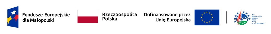 Cel 3. Wsparcie społeczności obszaru LGD w zakresie poprawy warunków i poziomu życia, finansowany z Funduszy Europejskich dla Małopolski 2021-2027 (Europejski Fundusz Rozwoju Regionalnego), a także z PS WPR na lata 2023-2027, finansowanego ze środków Europejskiego Funduszu Rolnego na Rzecz Rozwoju Obszarów Wiejskich.