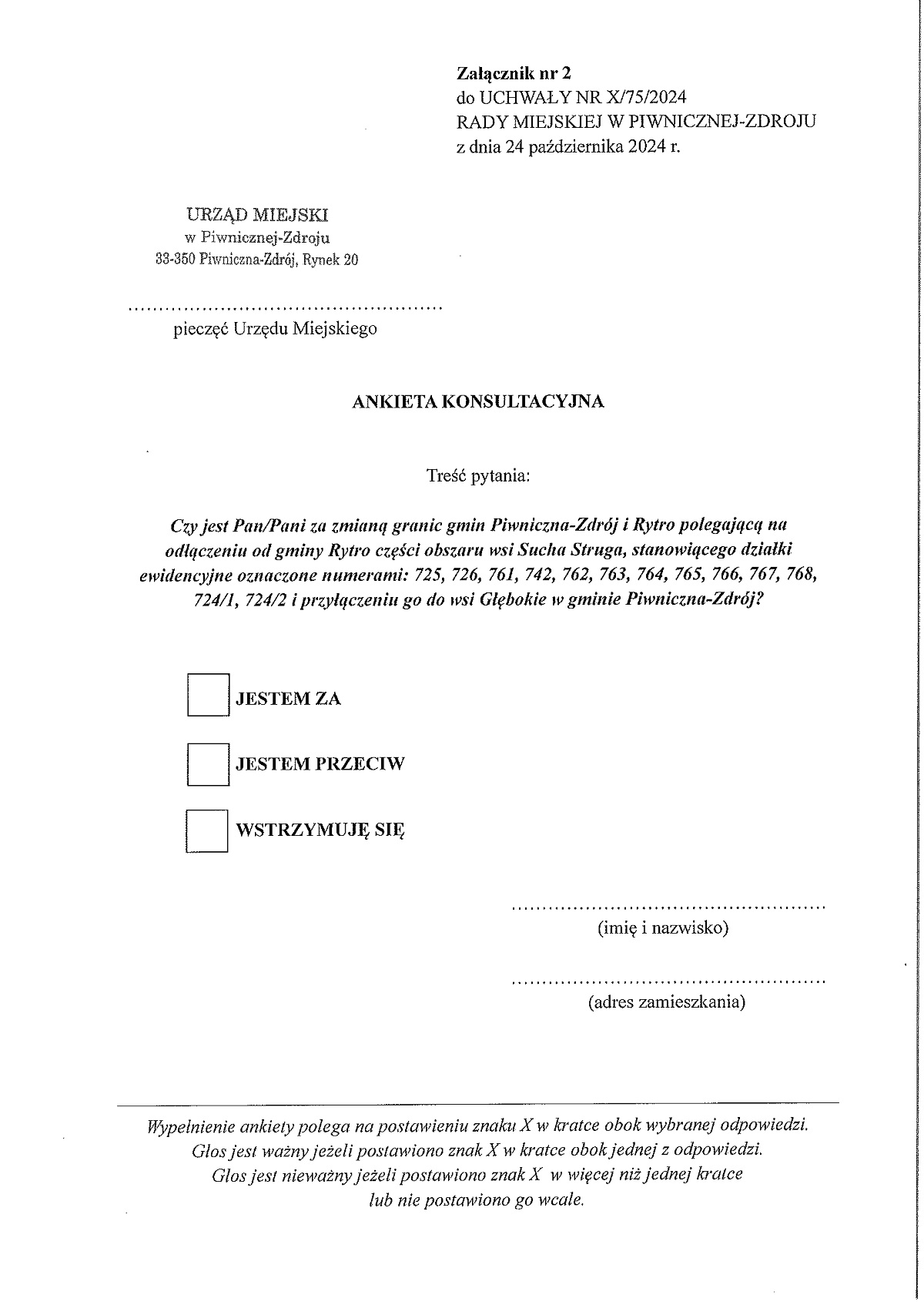 [07.11.2024 r.] KOMUNIKAT Burmistrza Piwnicznej-Zdroju w sprawie konsultacji społecznych z mieszkańcami sołectwa Głębokie do 29.11.2024 r.