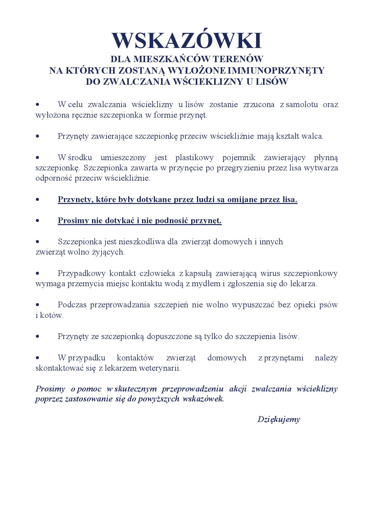 KOMUNIKAT Małopolskiego Wojewódzkiego Lekarza Weterynarii w Krakowie dot. szczepienia lisów w dniach 25-29.04.2022 r.