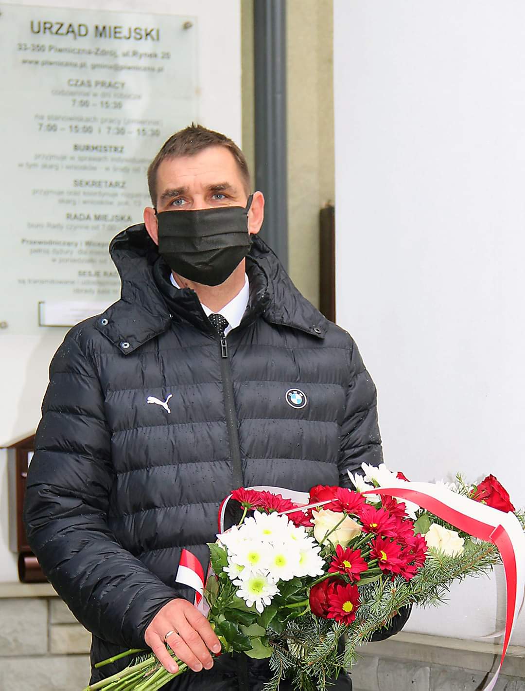 Burmistrz Piwnicznej-Zdroju Dariusz Chorużyk złożył wieniec pod pomnikiem „MIESZKAŃCY PIWNICZNEJ POLEGLI W LATACH II WOJNY ŚWIATOWEJ” obok Urzędu Miasta, a następnie uczestniczył w mszy świętej w intencjach Polski – naszej Ojczyzny oraz Miasta i Gminy Piwniczna-Zdrój w kościele parafialnym Narodzenia NMP w Piwnicznej-Zdroju.