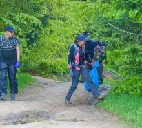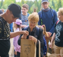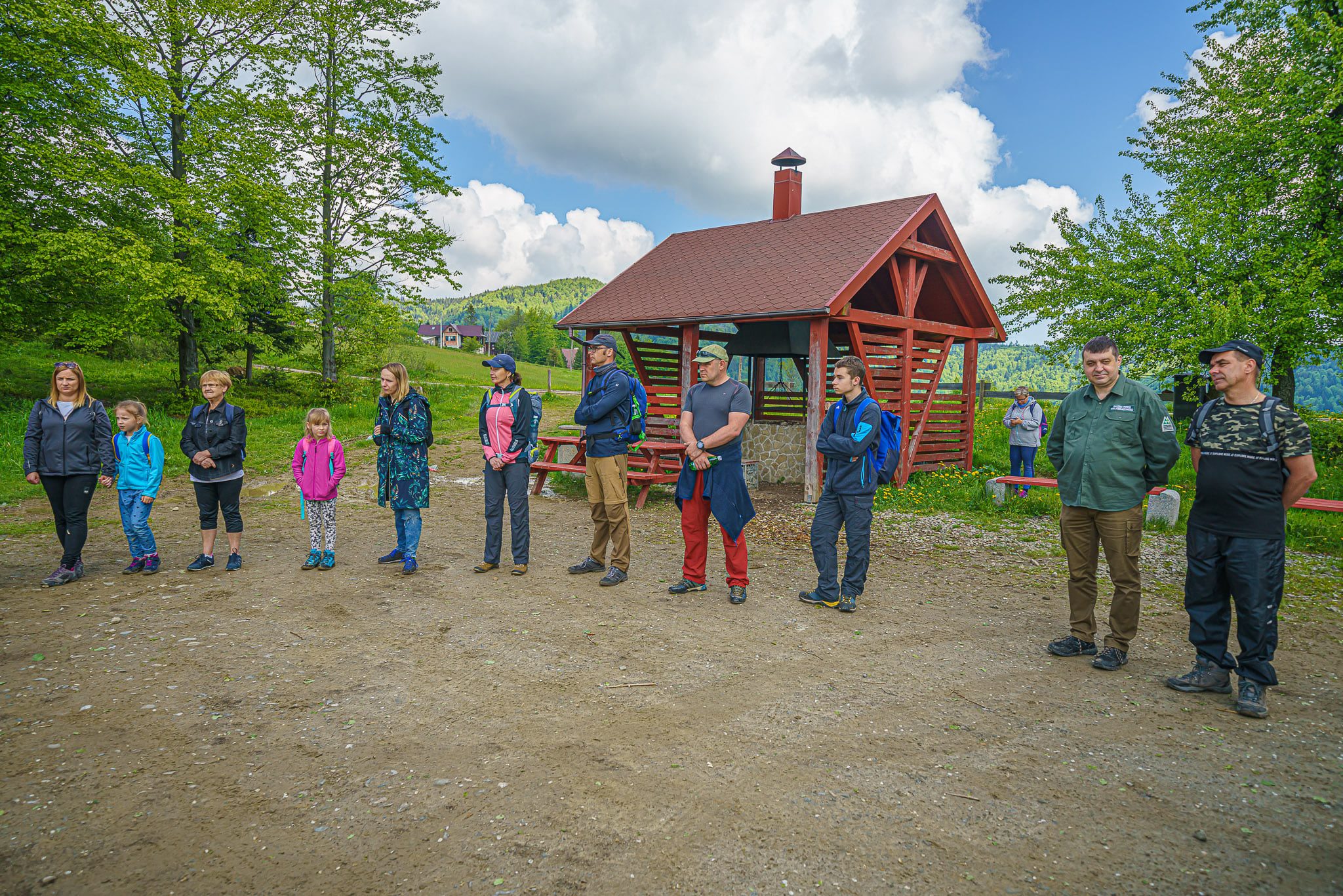 Nasza wędrówka rozpoczęła się miłą niespodzianką. Przywitał nas Burmistrz Miasto i Gmina Piwniczna-Zdrój – Dariusz Chorużyk, który wręczył wszystkim uczestnikom akcji drobne upominki. Pan Burmistrz razem z nami sprzątał także szlak na Radziejową – dziękujemy za pomoc. Prezenty otrzymaliśmy także od Popradzki Park Krajobrazowy, które osobiście wręczył dyrektor Marek Kroczek. Oczywiście każdy z uczestników otrzymał również wodę od partnera naszej akcji Kryniczanka - Naturalna Woda Mineralna, a kawę i herbatę przy ognisku serwował Pan Zdrówko. Dziękujemy. Naszym przewodnikiem podczas wszystkich wędrówek była Zuzanna Długosz, czyli Baba z gór. Dziś nie mogła się rozdwoić, dlatego grupę na Eliaszówkę prowadziła znana na Sądecczyźnie artystka ludowa Małgorzata Polańska-Kubiak. Dziękujemy